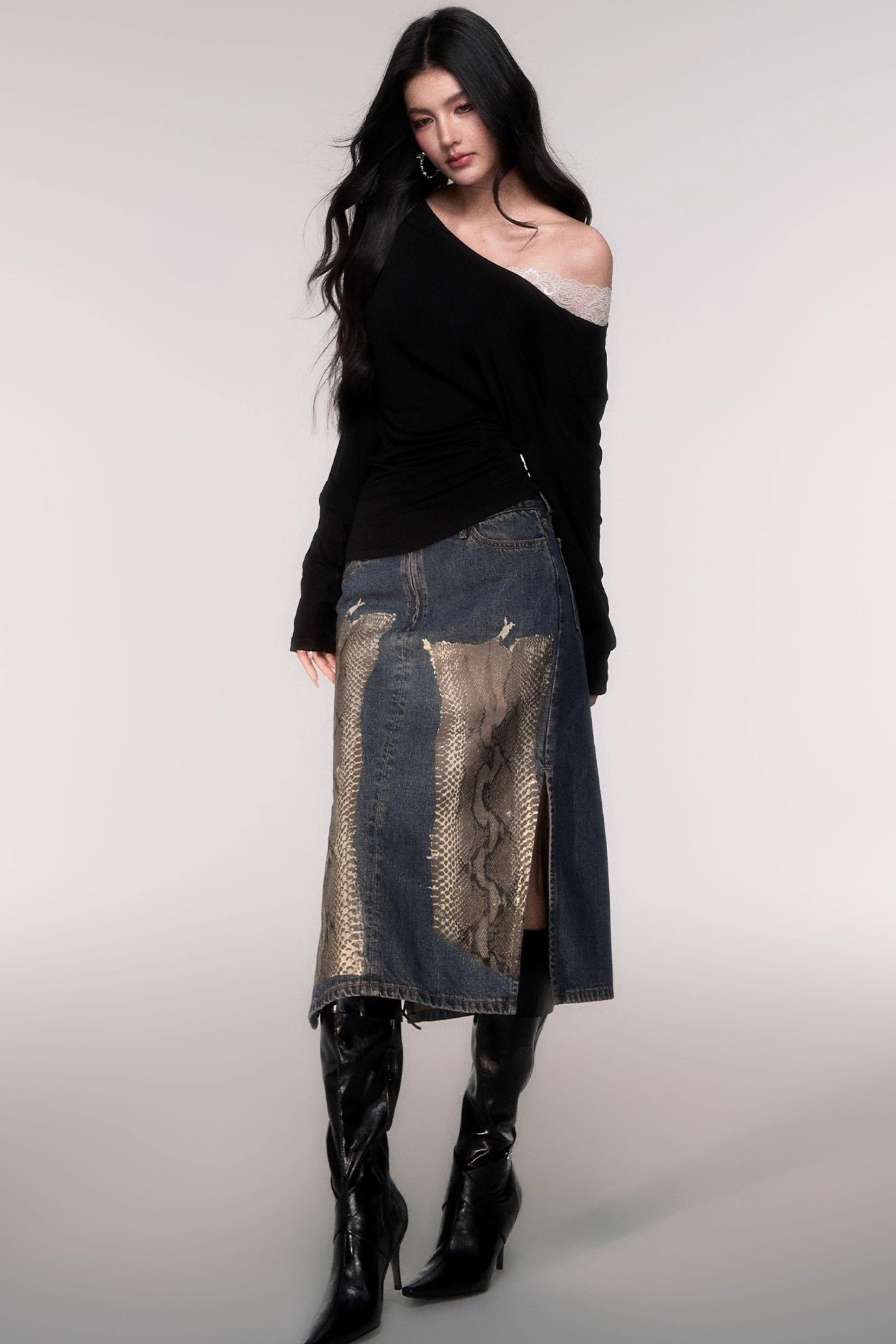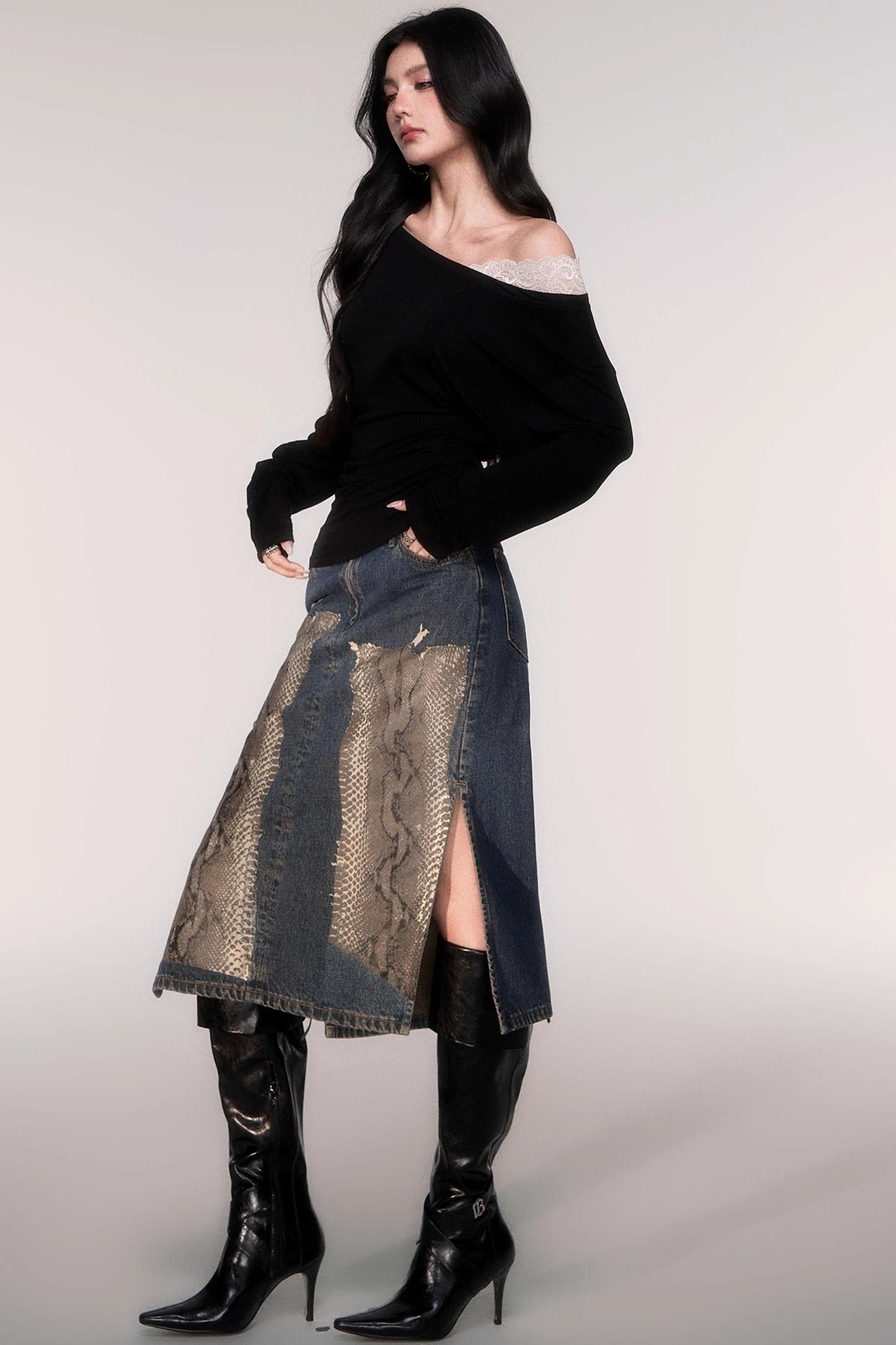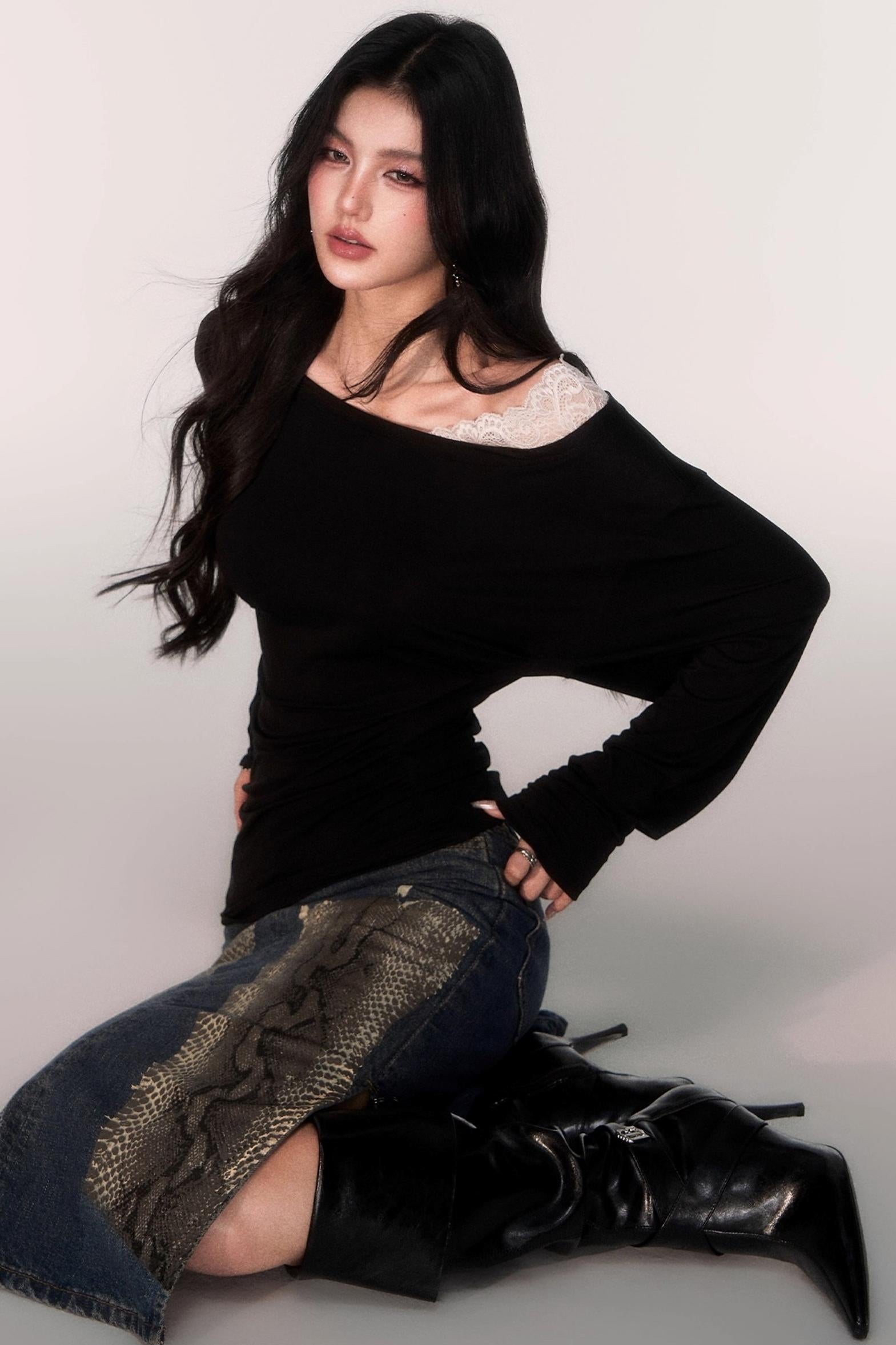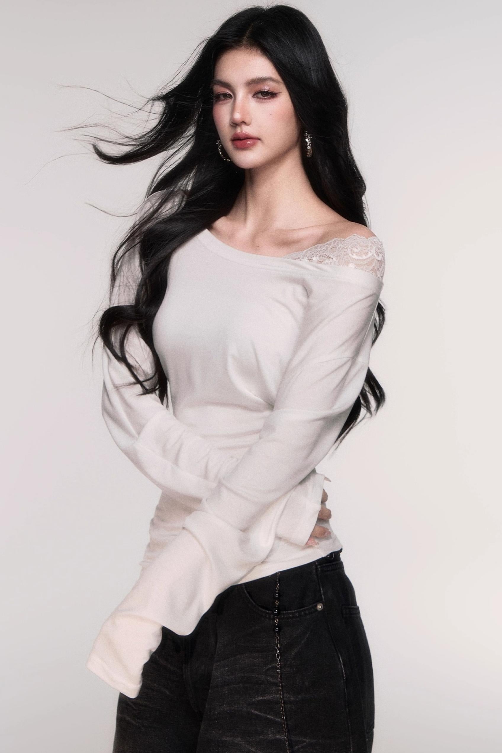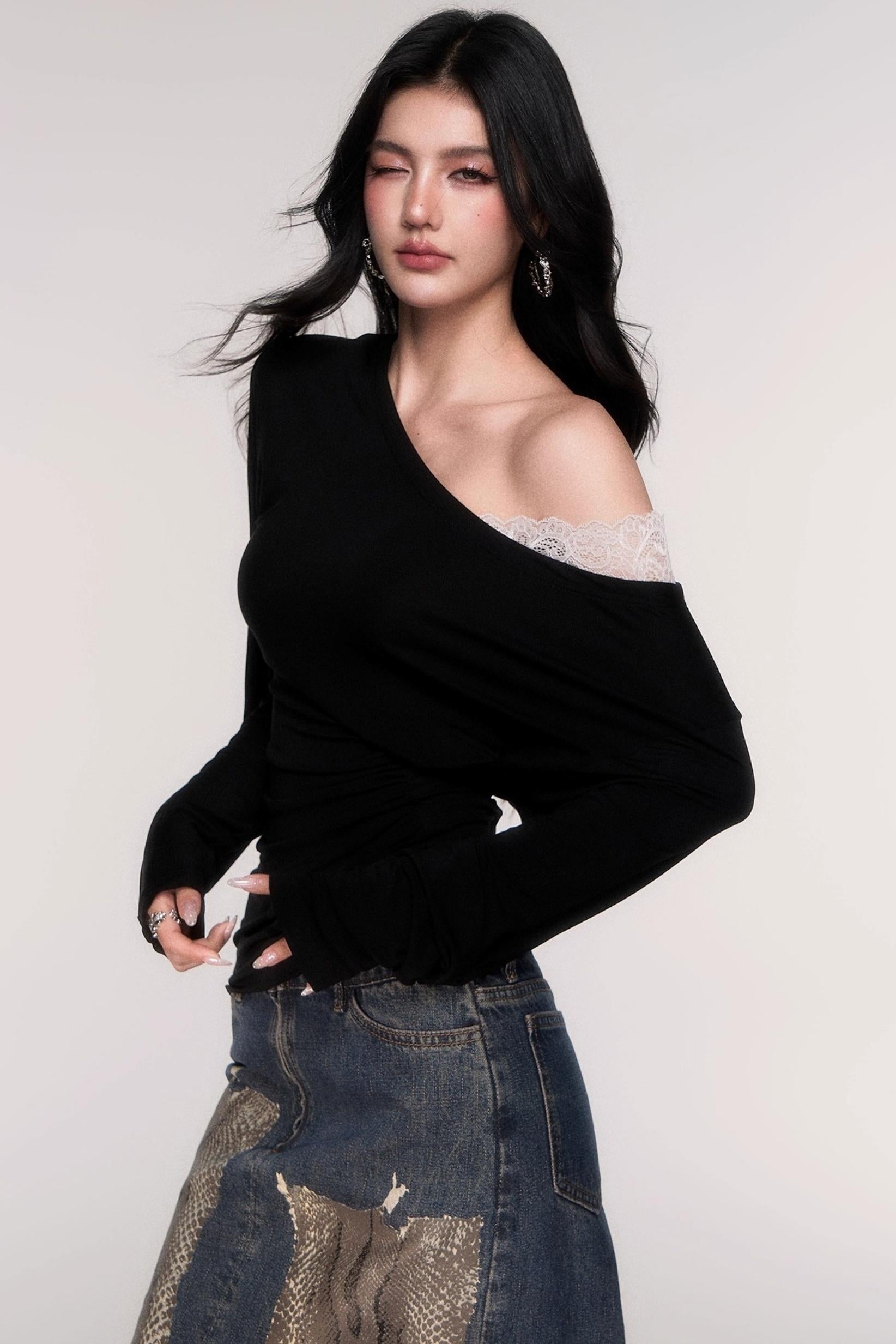 Tencel Panelled Lace Cross-Shoulder Top