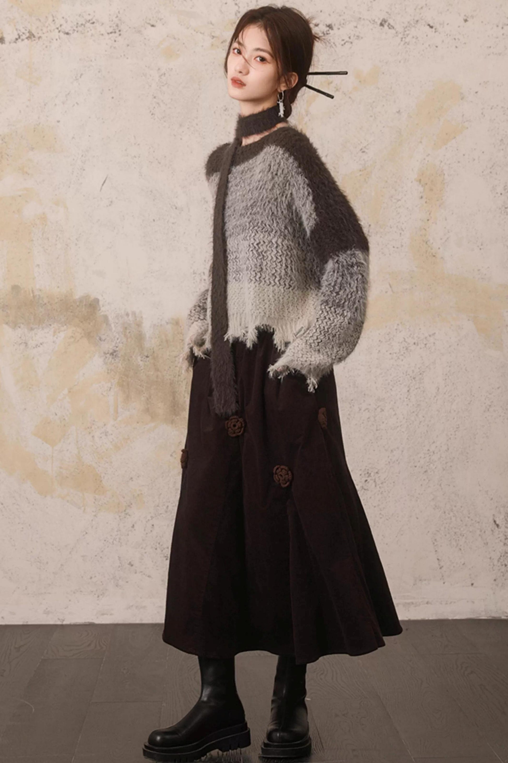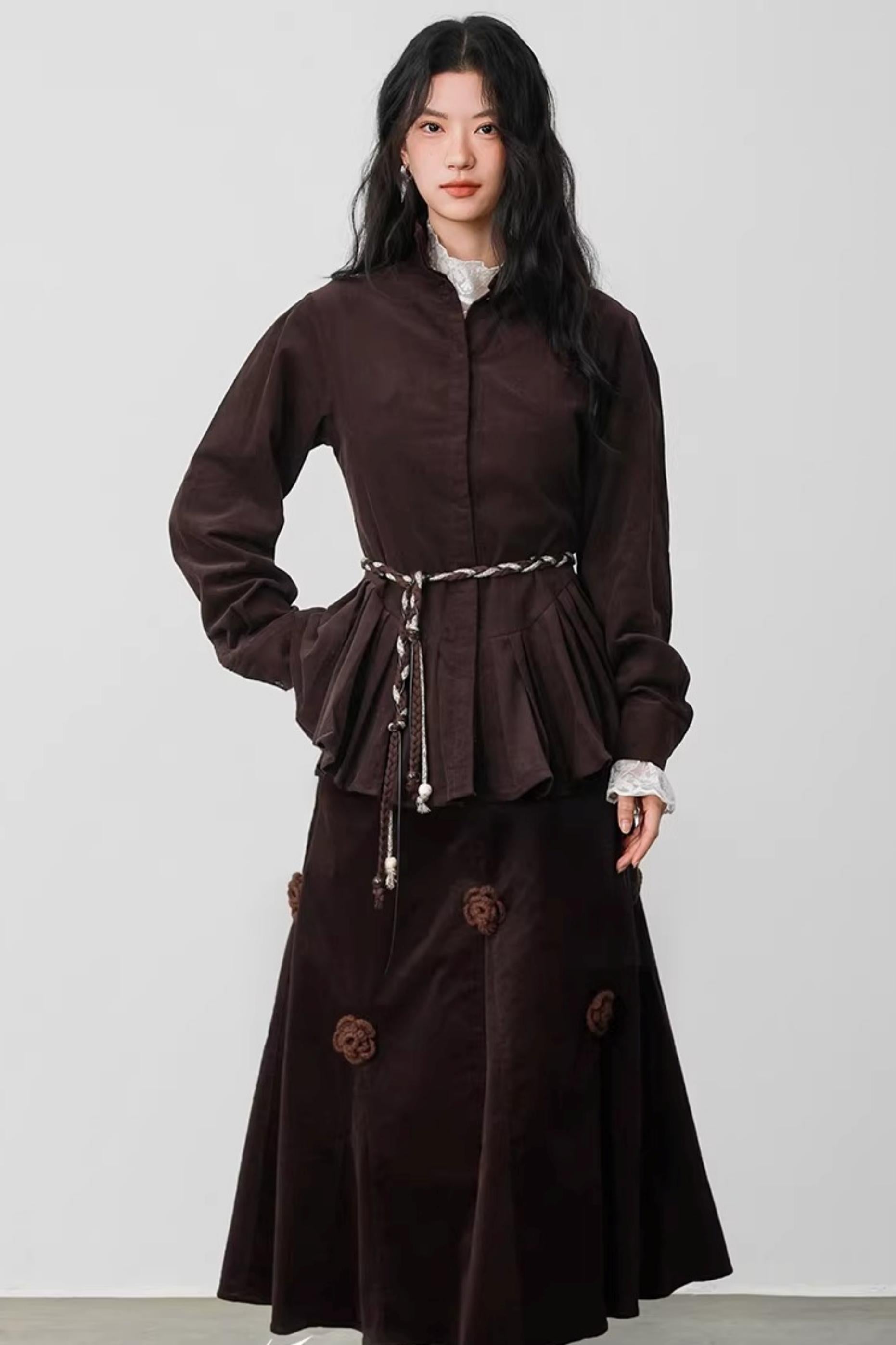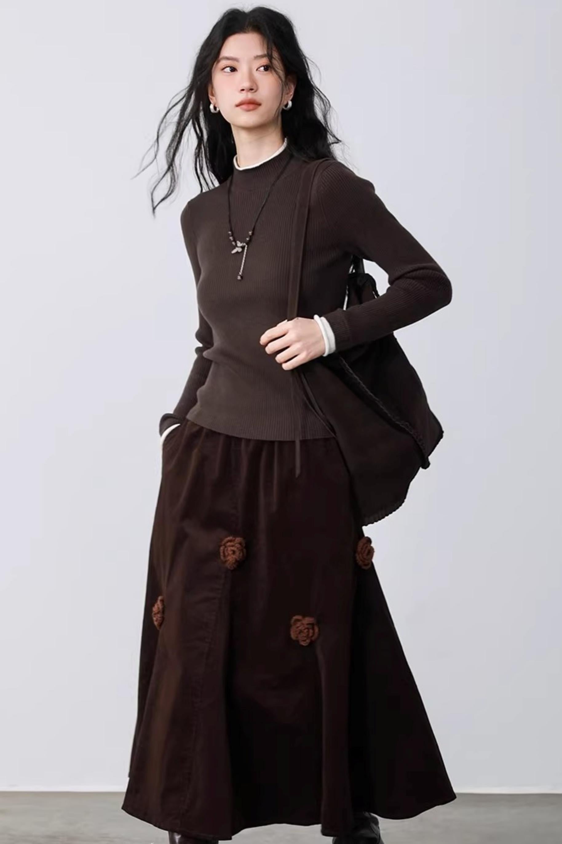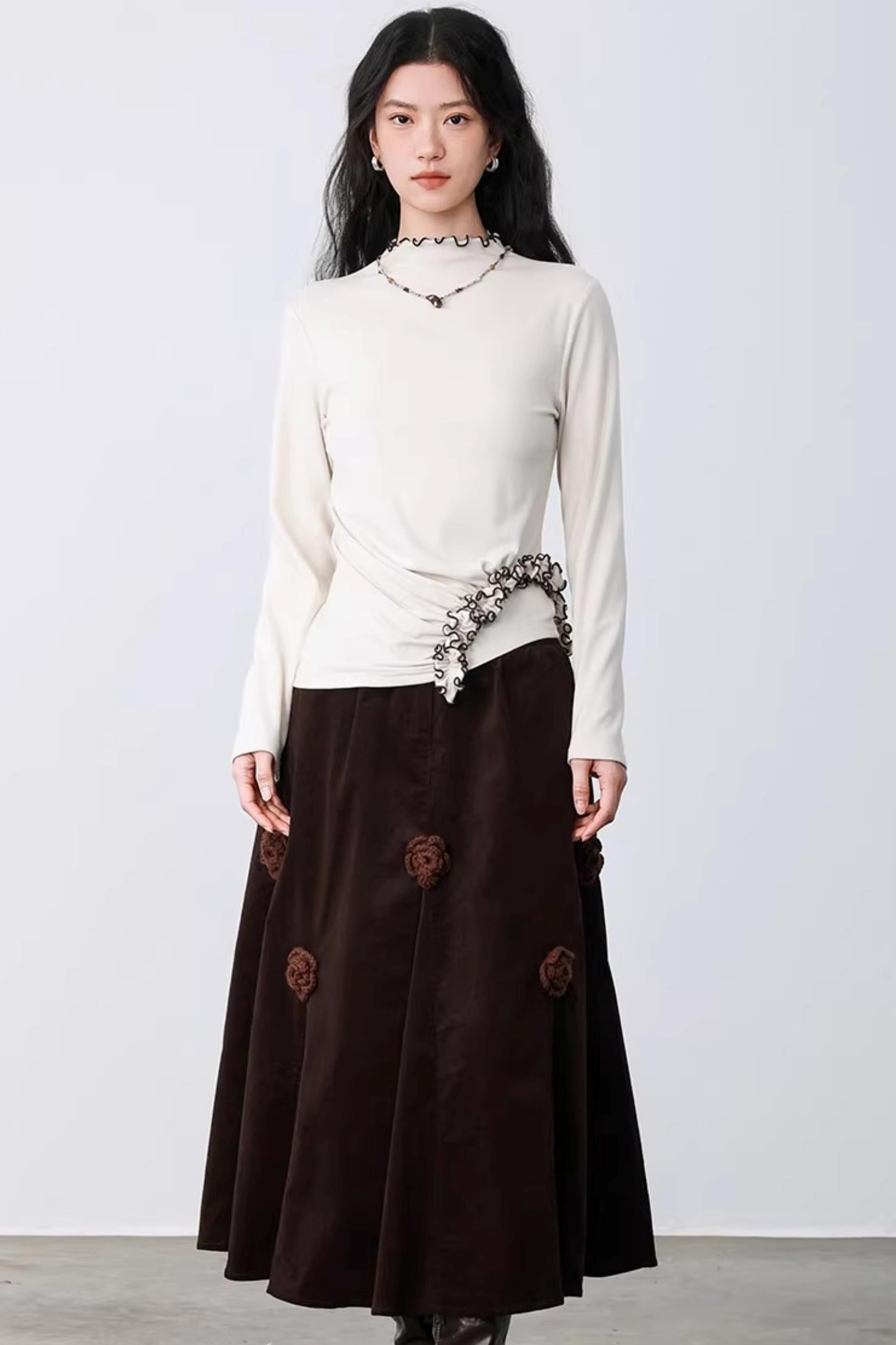 Three-Dimensional Floral Corduroy Skirt