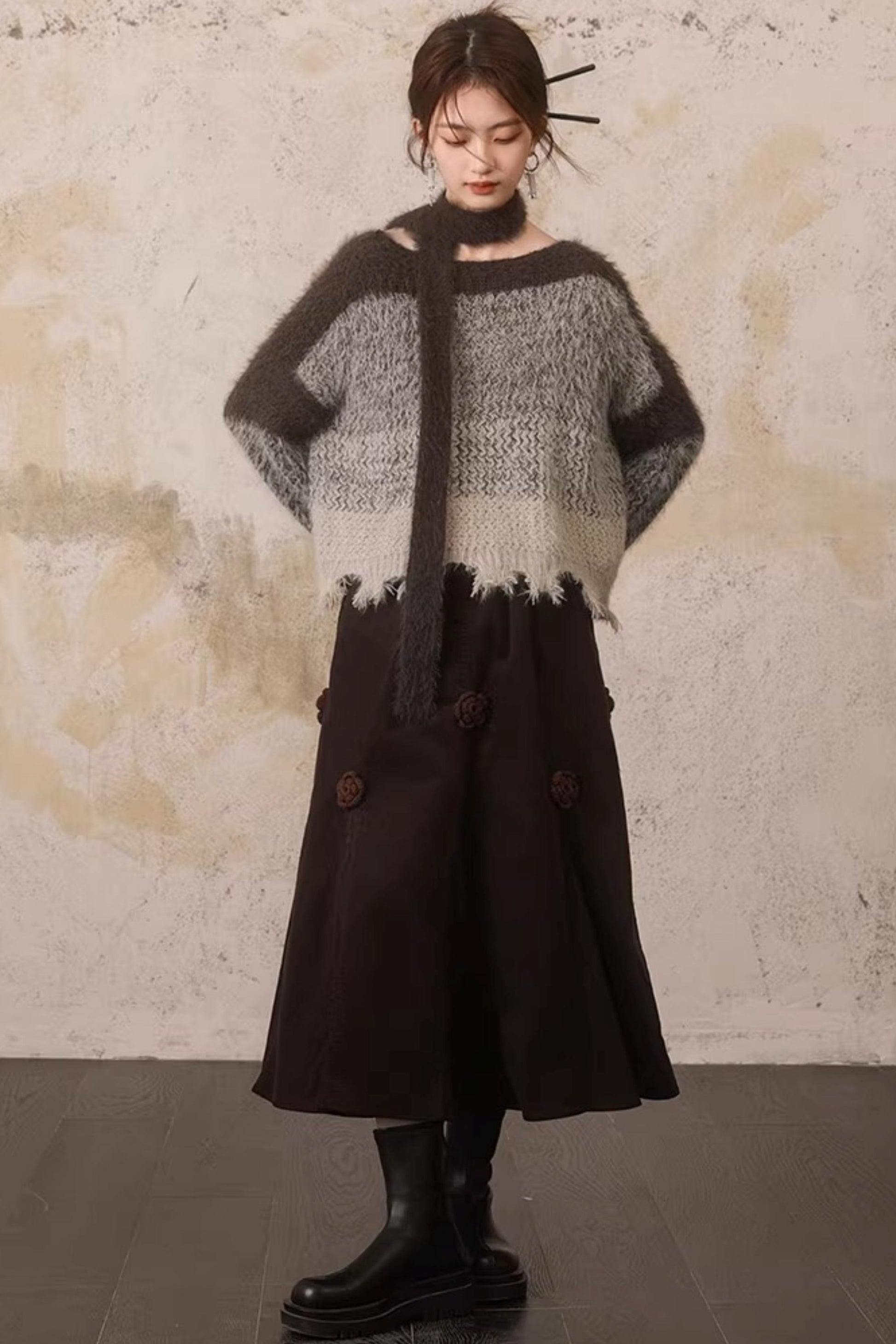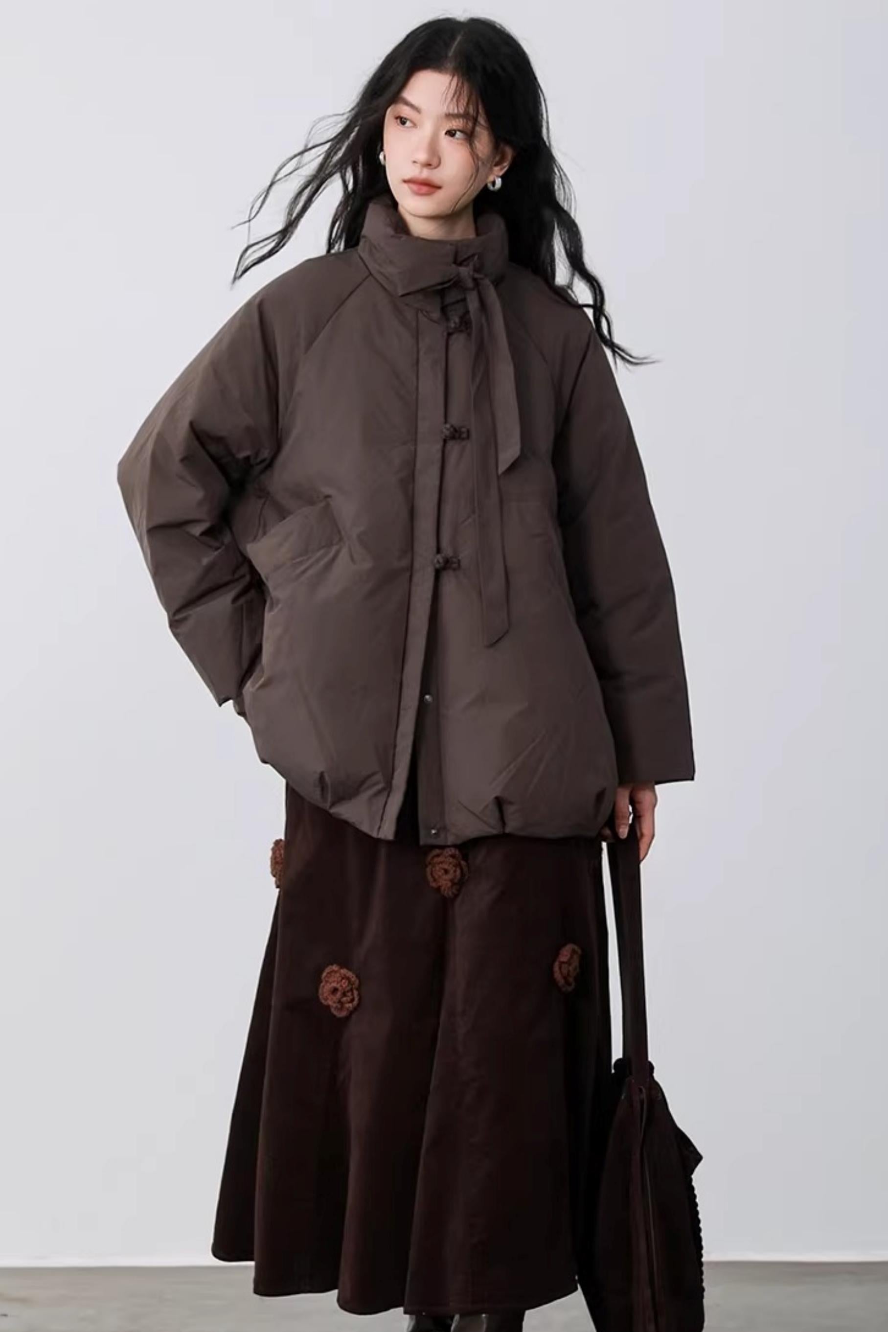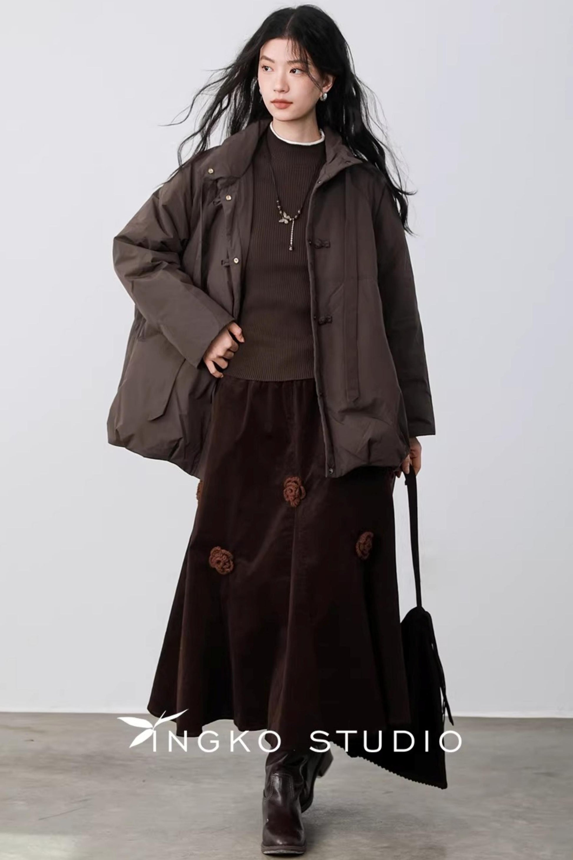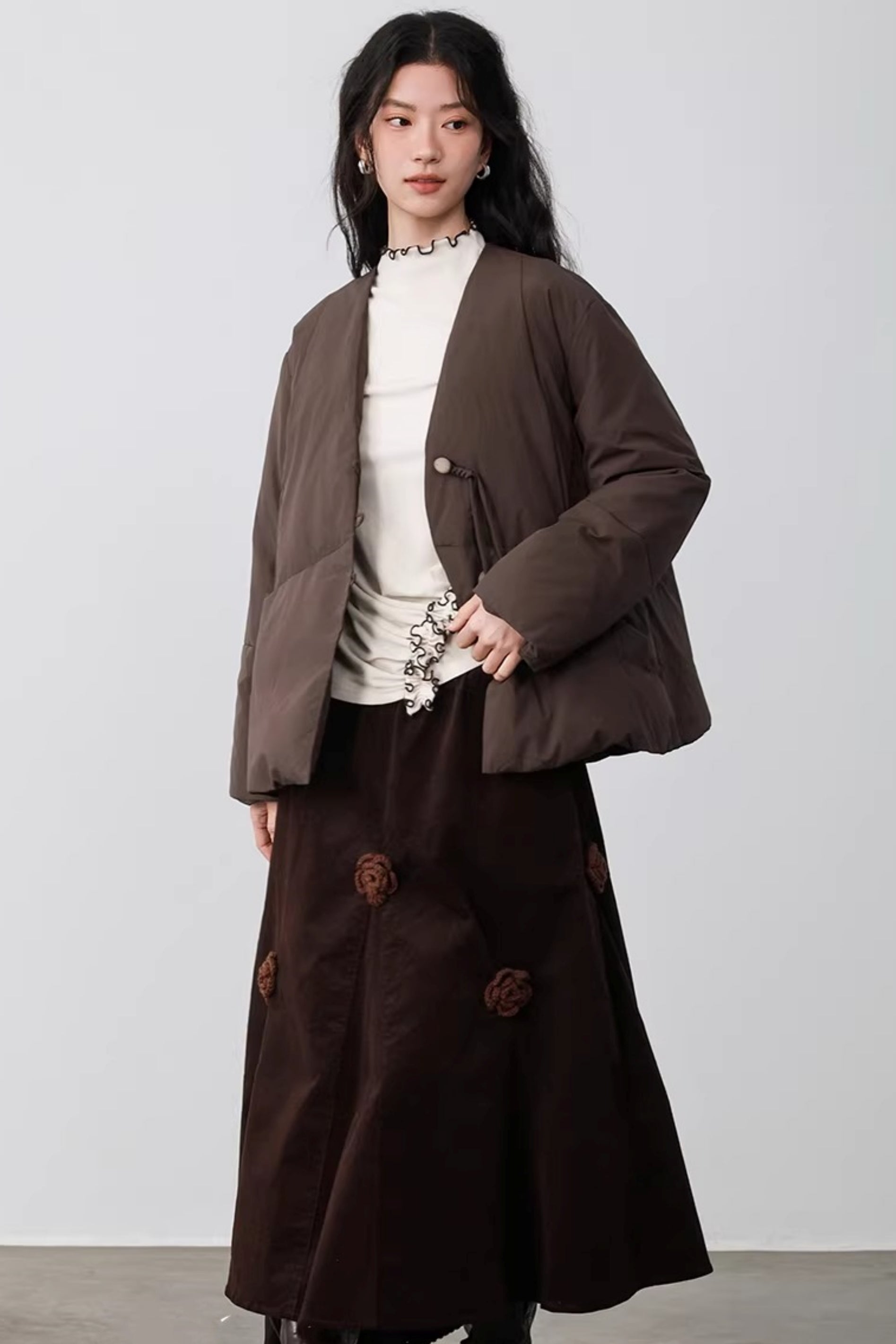Three-Dimensional Floral Corduroy Skirt