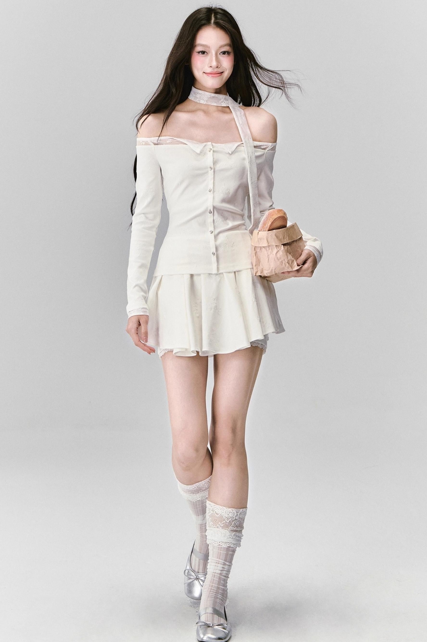 White Moonlight Lace Embroidered Top Skirt Set-Up