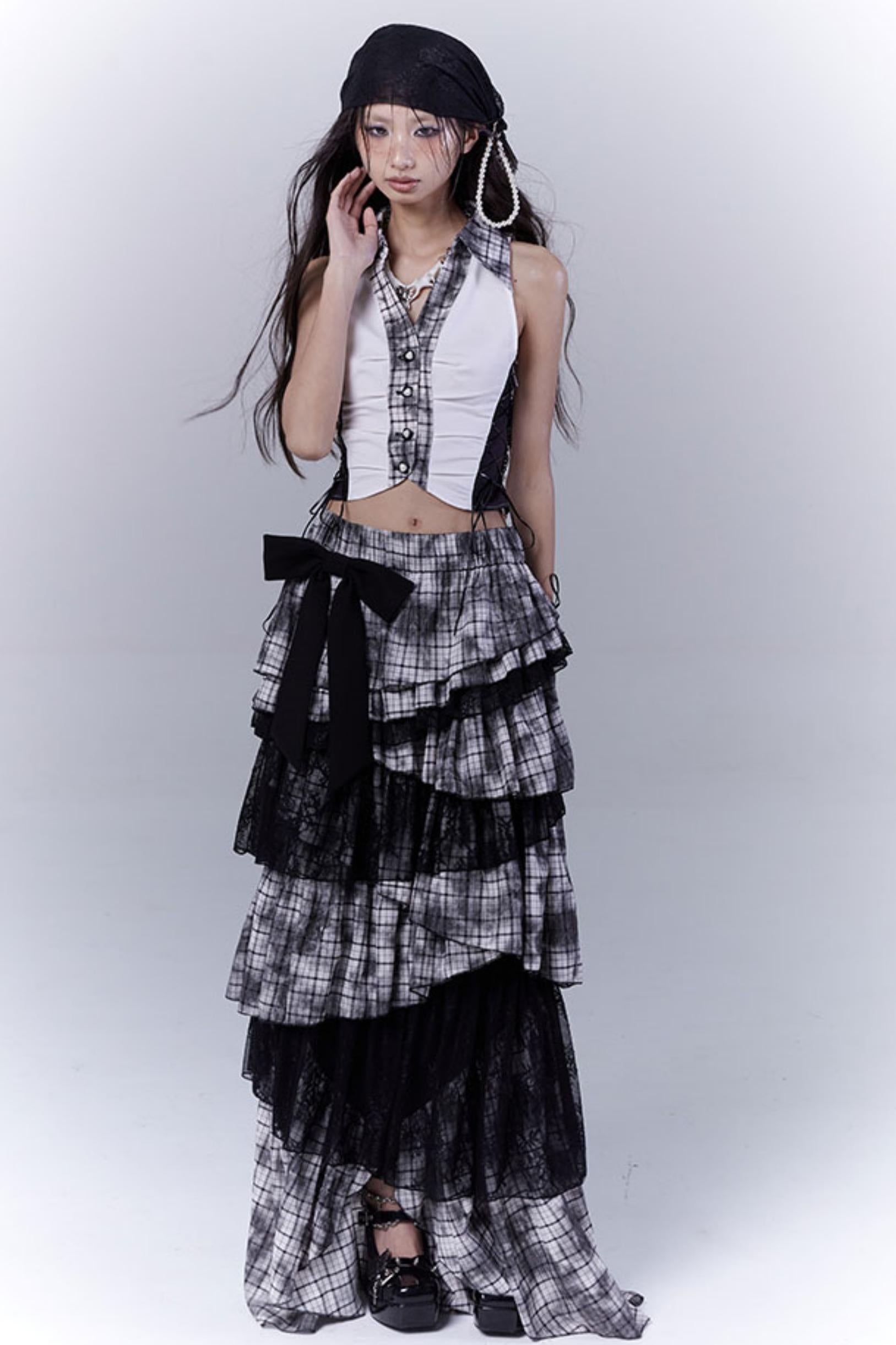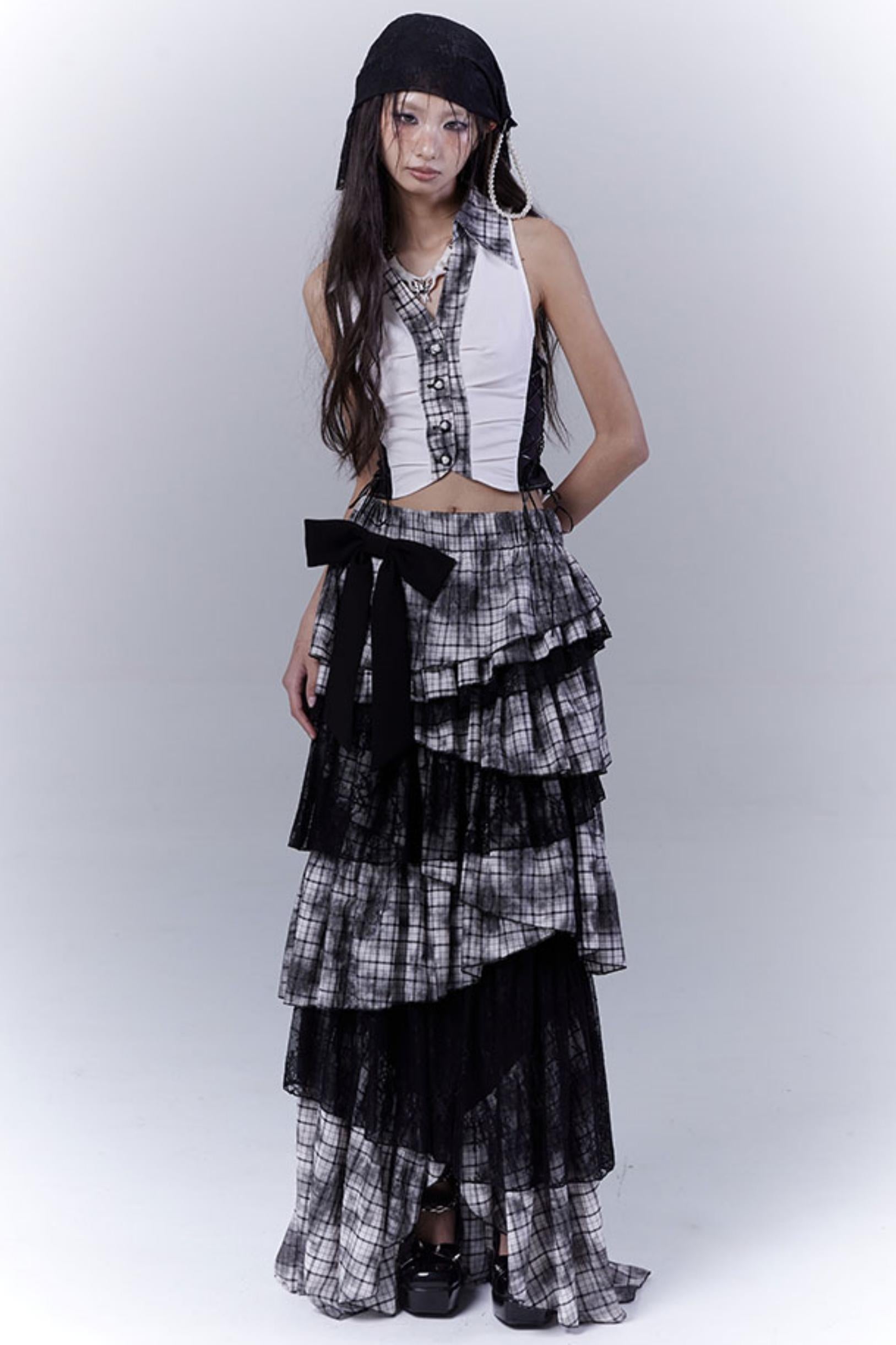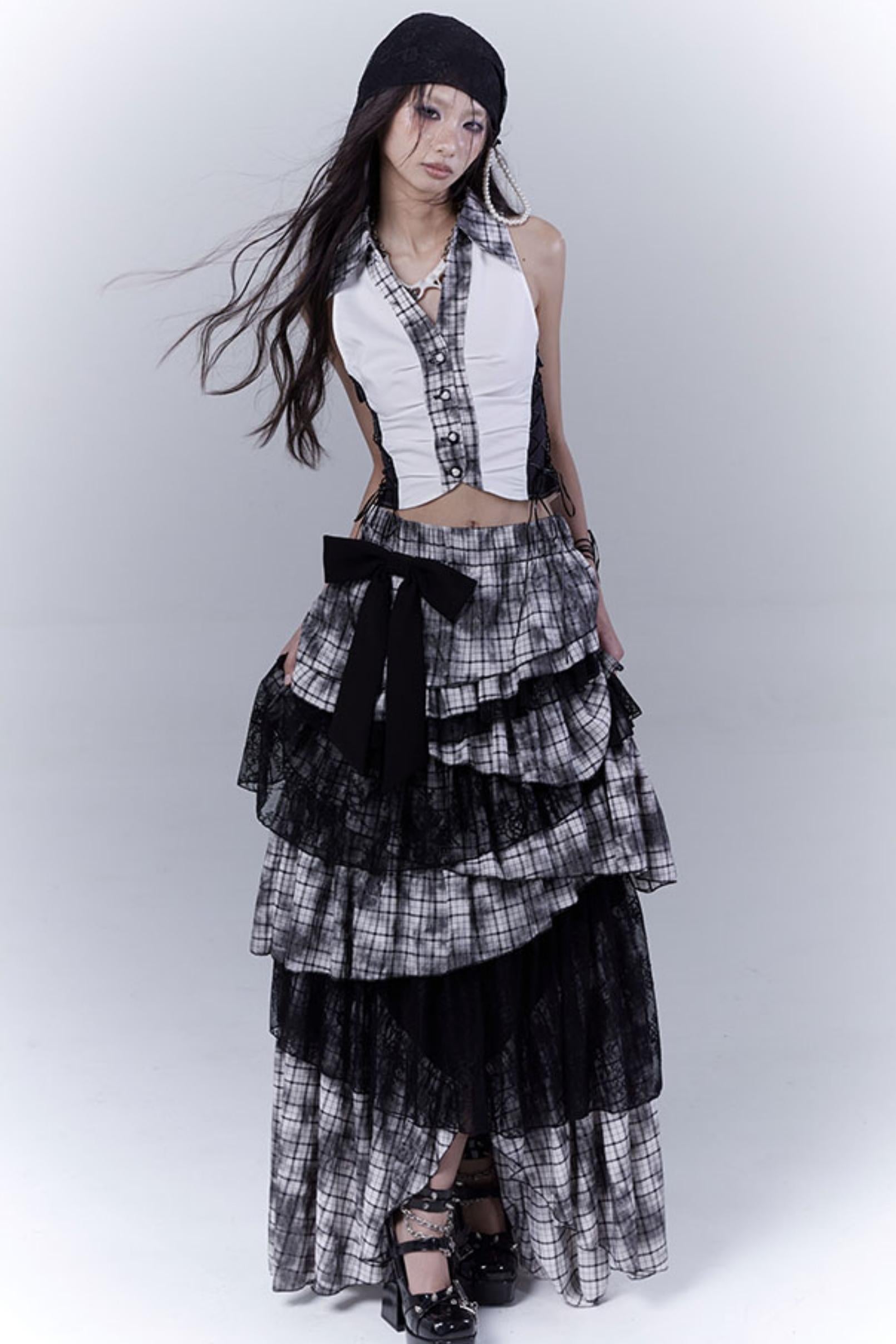 Wilderness Lace-Trimmed Plaid Bustier Skirt