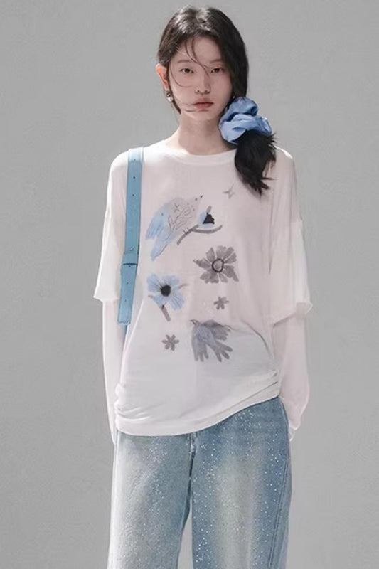 Bird and Floral Tencel Blouse
