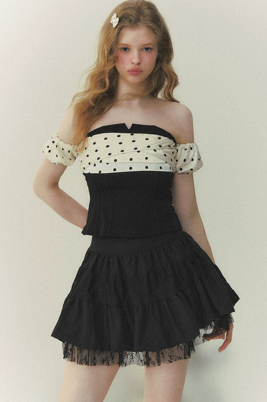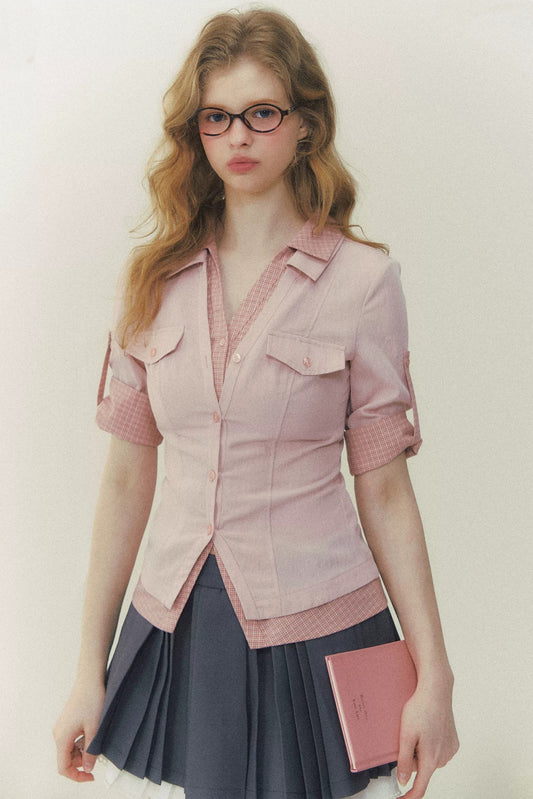 Patchwork Plaid Embroidered Top & Skirt Set-Up