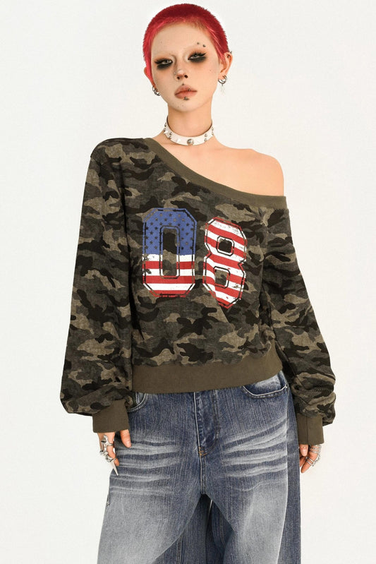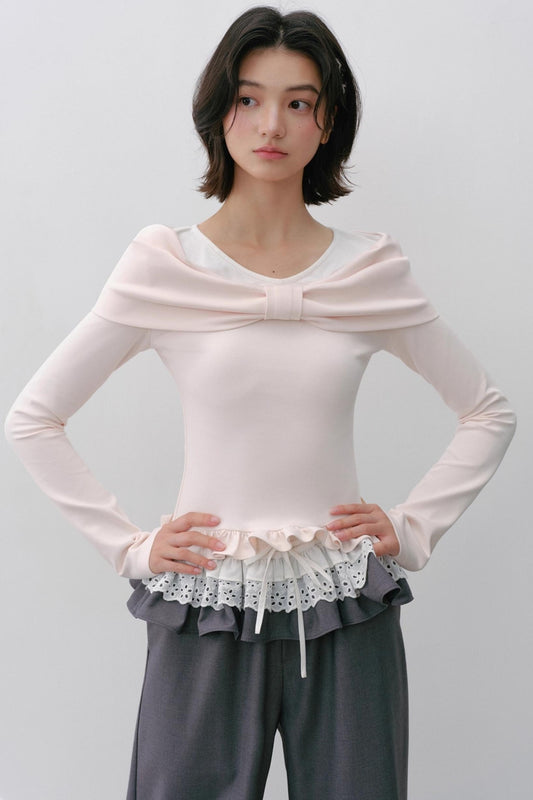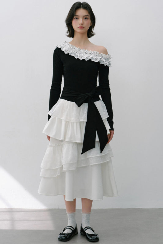 Slanted Polka Dot Long-Sleeved T-Shirt