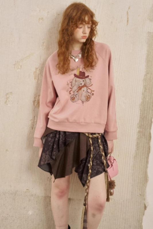 Wilderness Rabbit Patchwork Belt Long Skirt