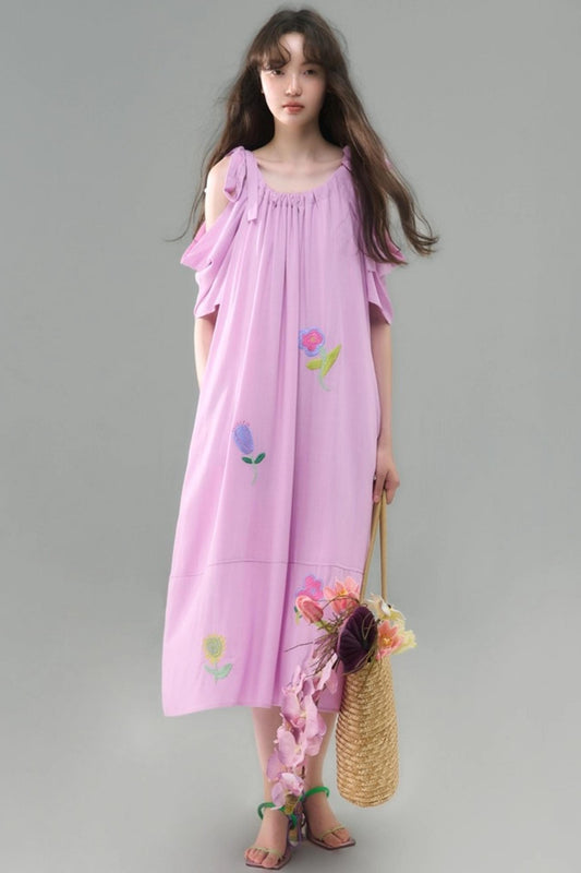 Island Tea Flower Embroidered Top & Skirt Set-Up