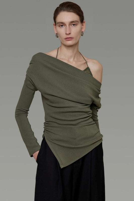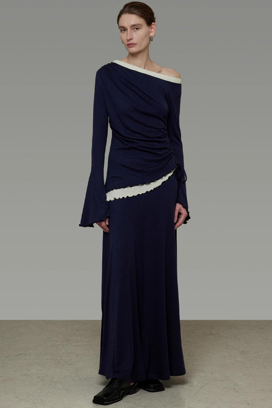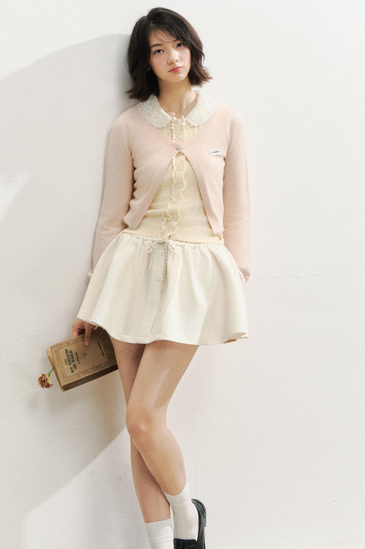 Autumn Shoulder Knit Slacks Skirt Set-Up