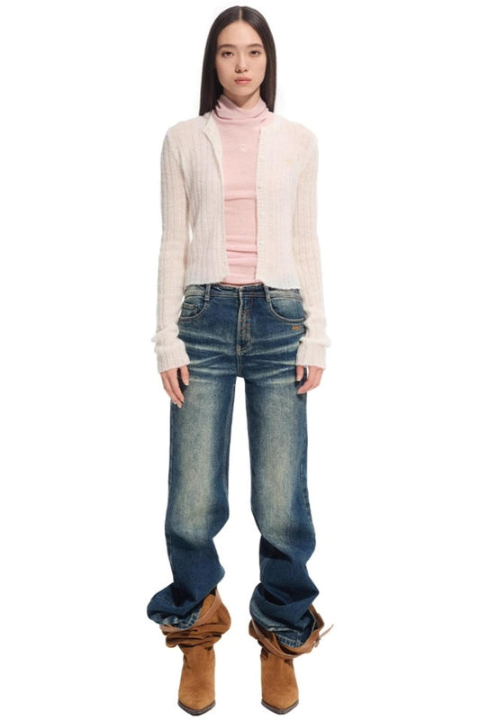 Alpaca Knit Layered V-Neck Long Sleeve Top