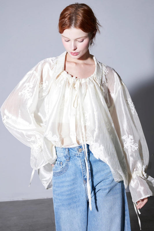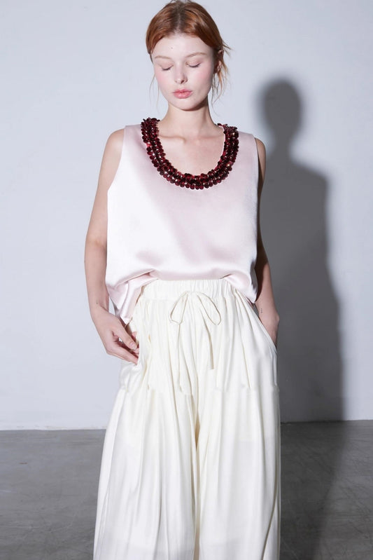 Cotton Elastic Lace-Up Wide-Leg Balloon Pants