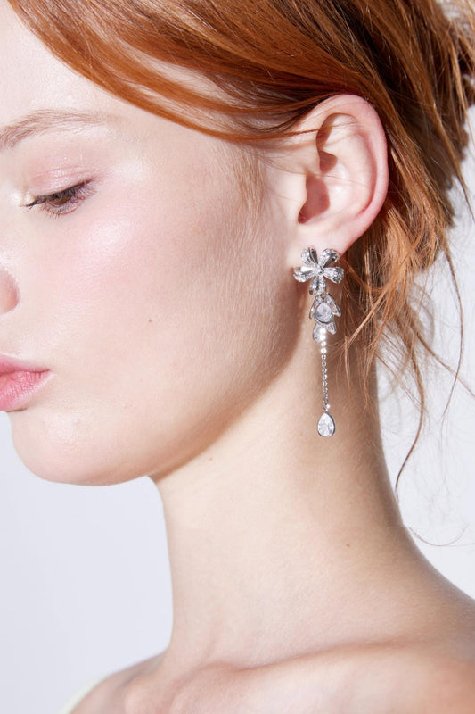 Flower Cluster Zircon White Gold Irregular Tassel Earrings