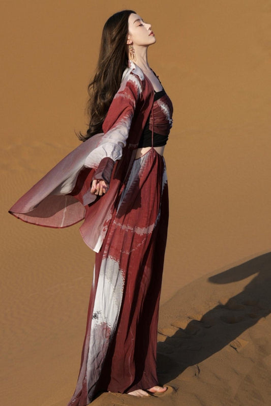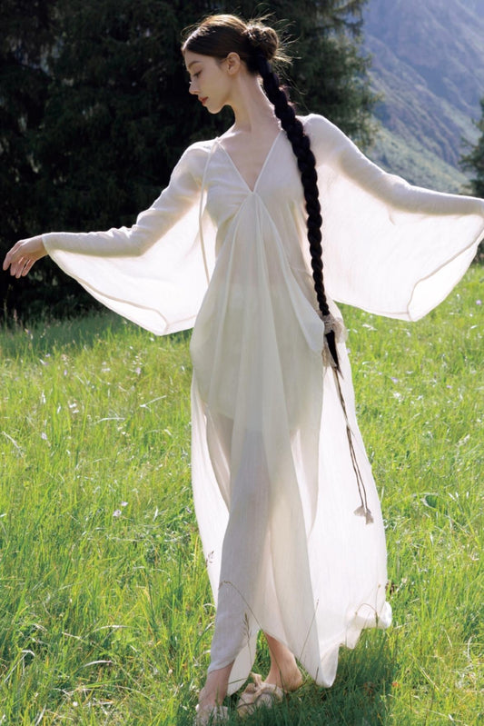 Chinese Ink Blended V-Neck Bat Sleeve Long Dress