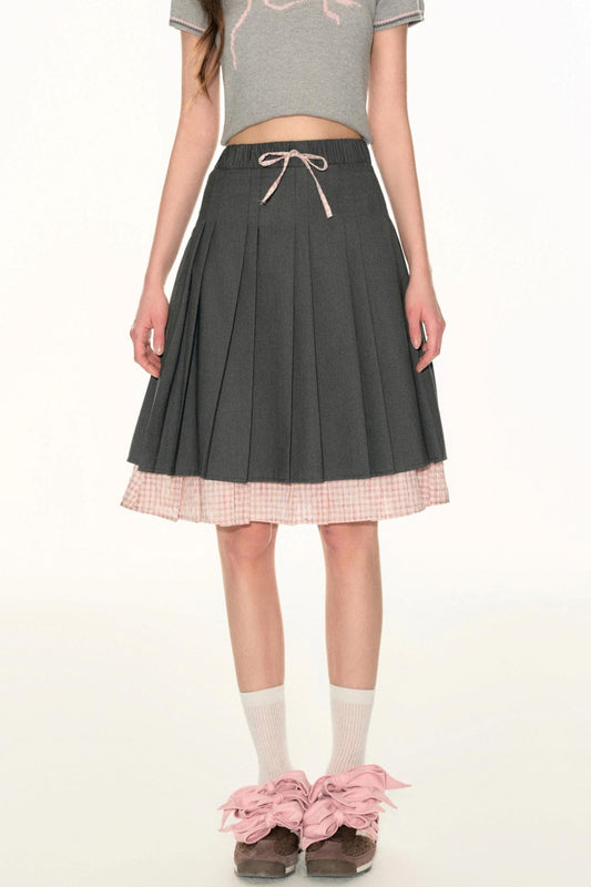 Double Plaid Pleated Skirt