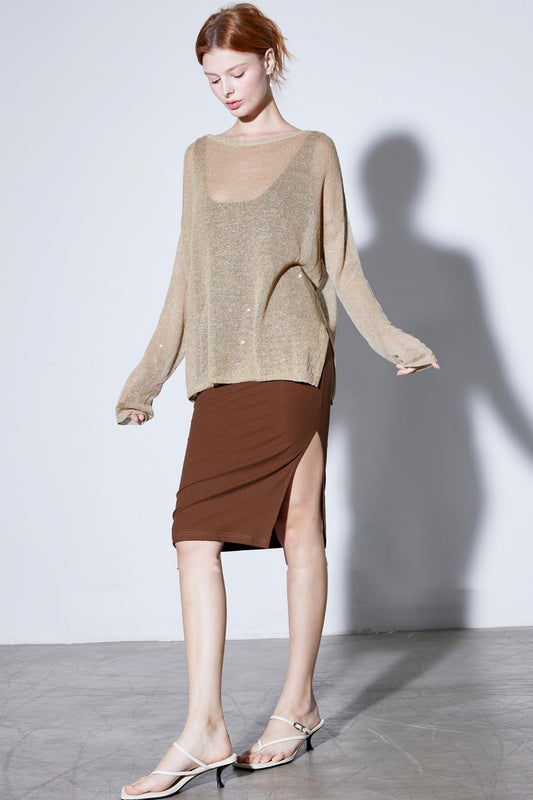 Lightweight Linen Sequins Knit Top
