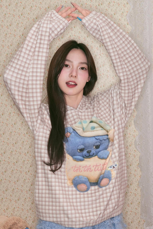Elastic Floral Fleece Hooded Jacket Set-Up