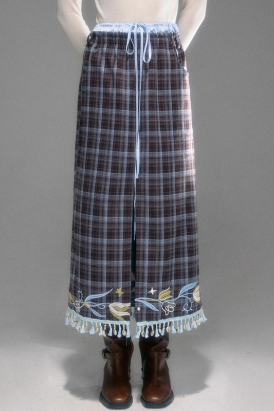 Vintage Embroidery Denim Cardigan Pants Set-Up