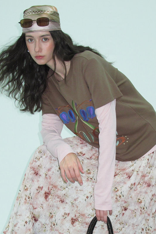 Fake Two-Piece Contrast Long Sleeve T-shirt