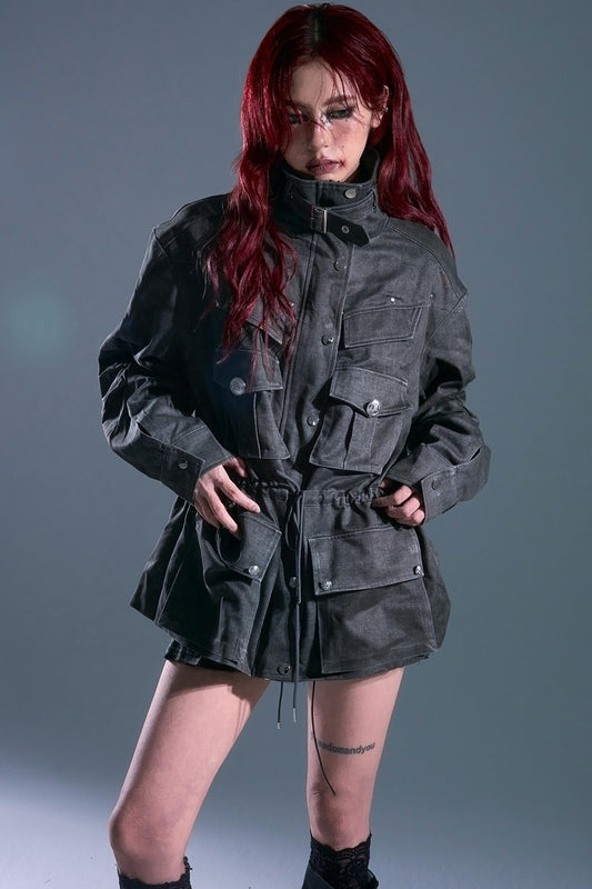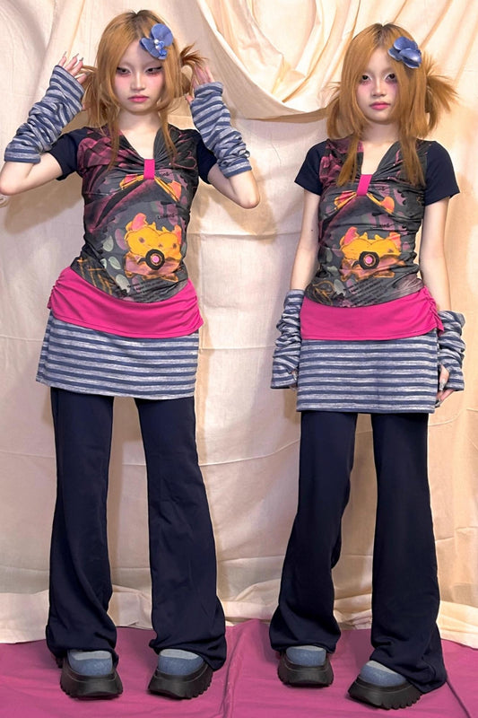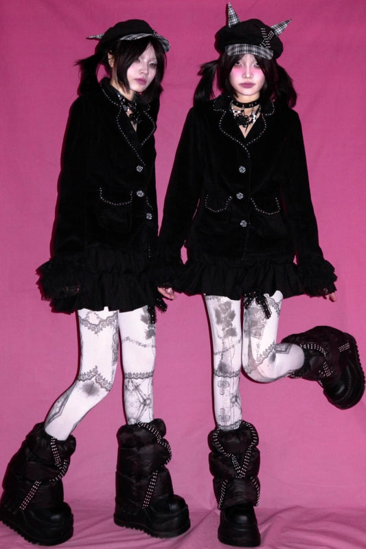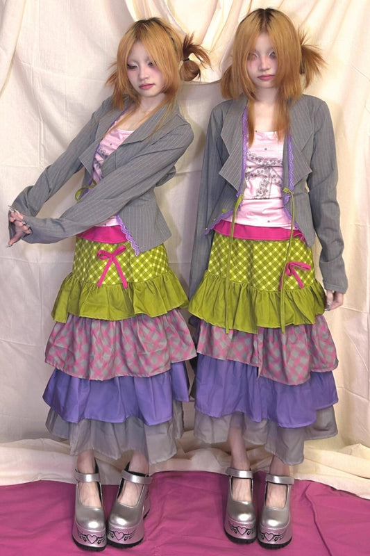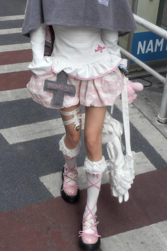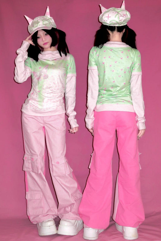 Pink Polka Dot Stripe Stitching Tie Short Jacket