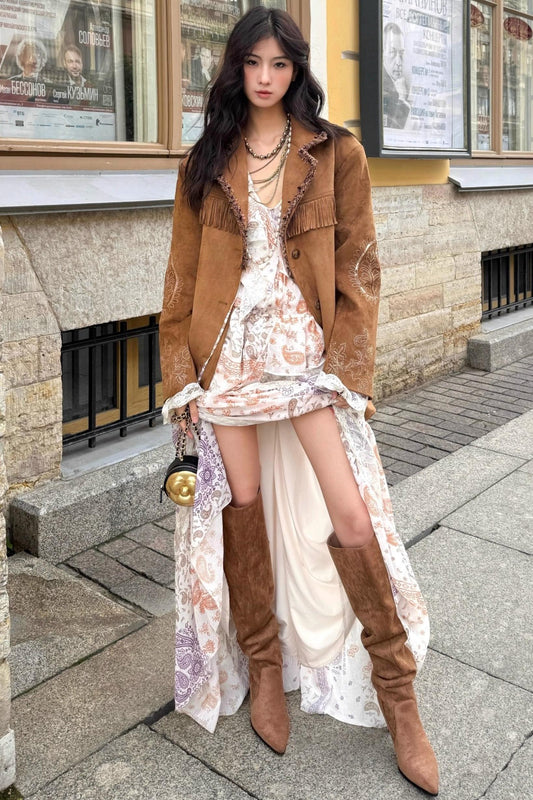 Sweet Bohemian Embroidery Fringed Blazer Set-Up