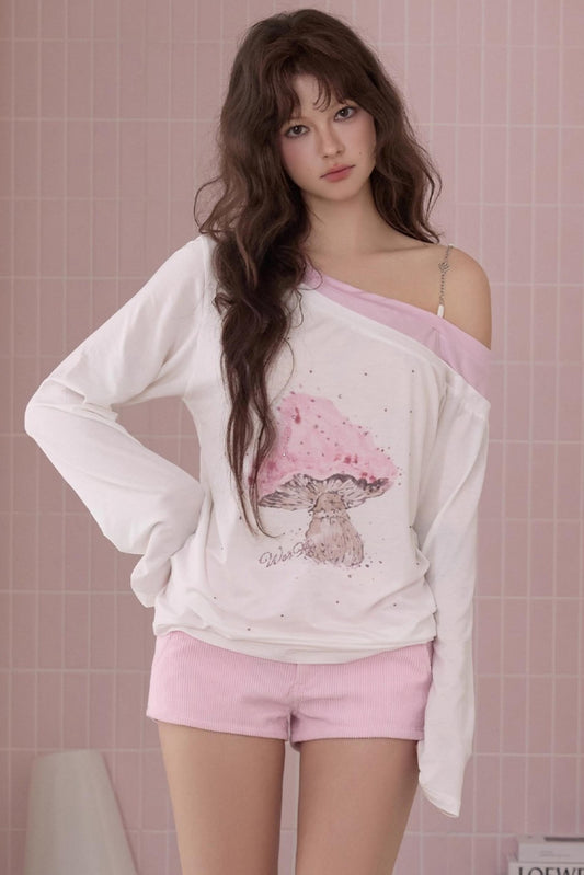 Mushroom Print Shoulder T-Shirt