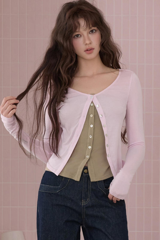 Slim Camisole Knitted Cardigan Two-Piece Set-Up