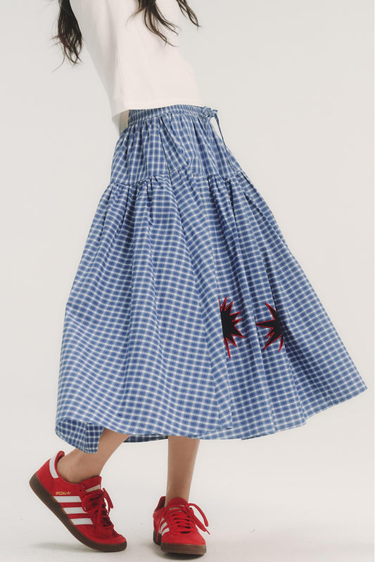 Geometric Pattern Plaid Midi Skirt