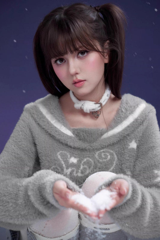 Oatmeal Mink Fur Sweater Scarf Set-Up