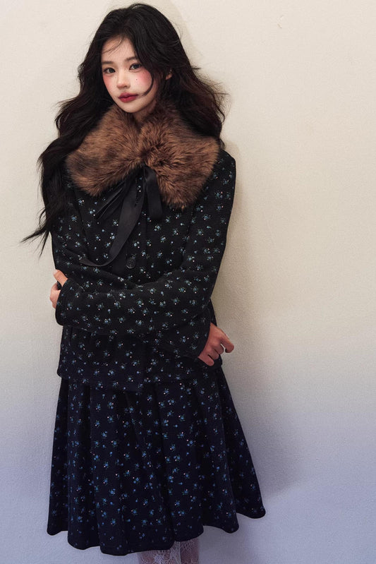 Ice Blue Fur Winter Coat set