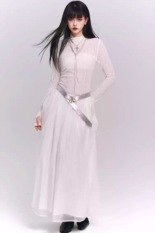 White Moonlight Lace Embroidered Top Skirt Set-Up