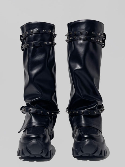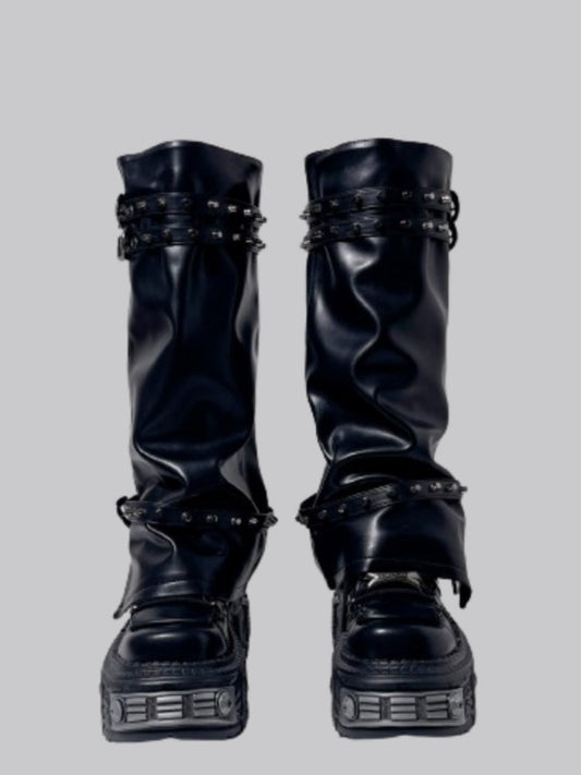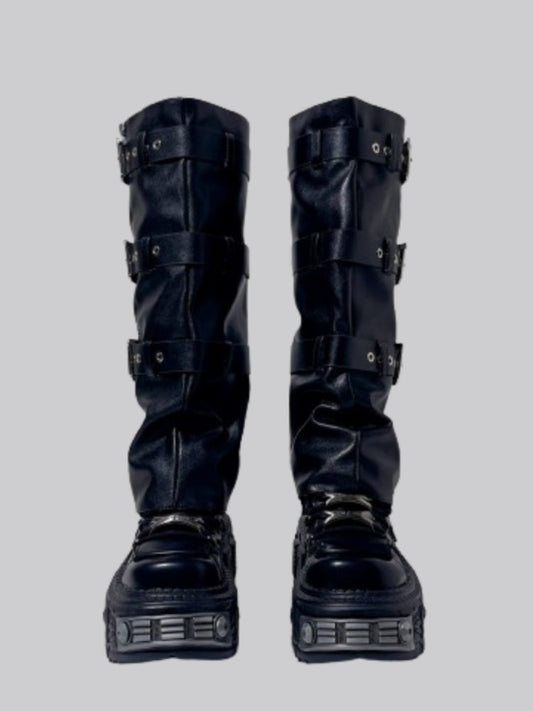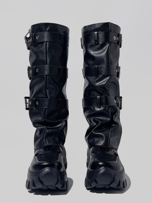 Y2K Punk Style Triple Belt Volume Sole Long Boots
