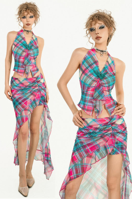 Sweet and Spicy Fishbone Corset Plaid Skirt Set-Up