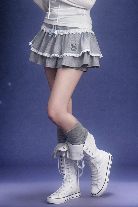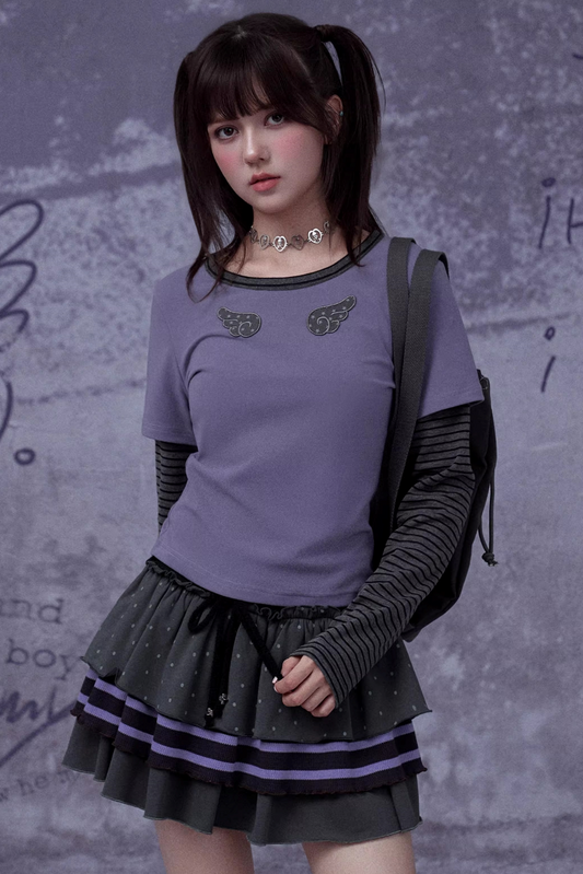 Baby Blue Embroidery Cotton Top and Skirt Set-Up
