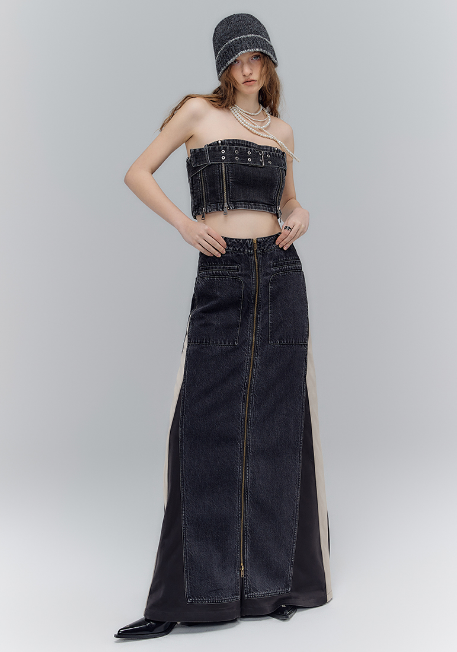 Old wash 2-way denim pants skirt