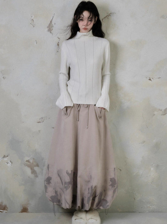 Shadow Printed Cotton Flower Bud Skirt