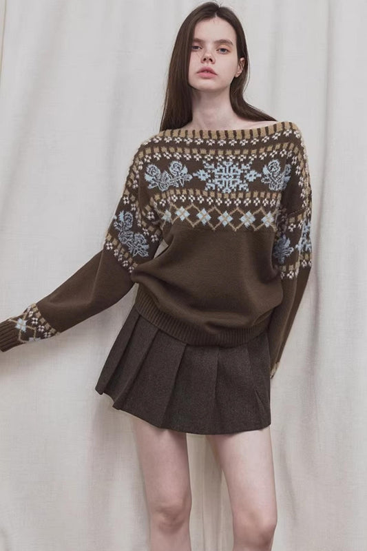Brown Fair Isle Wool Sweater