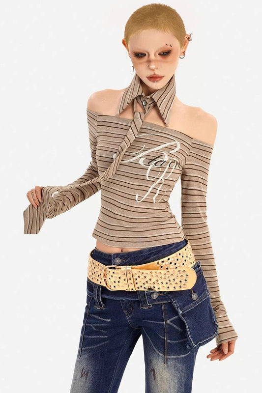Retro Striped Off-Shoulder Top