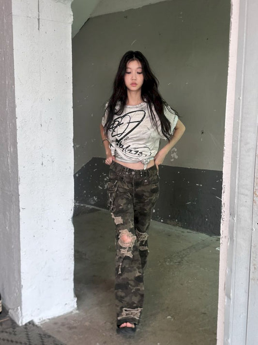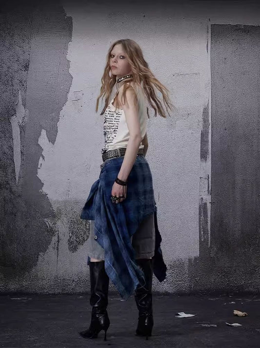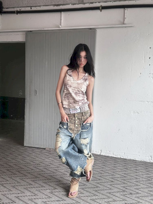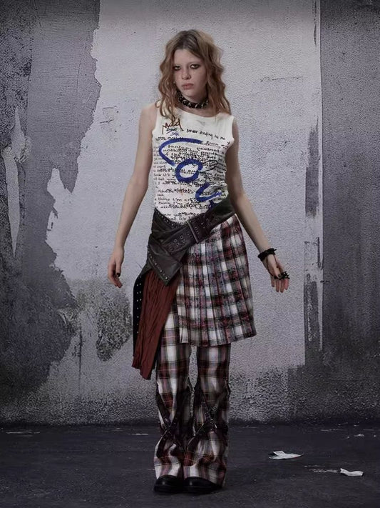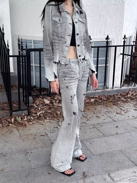 Ink splattered heavy deconstructed junk rock shirt modified thin jeans
