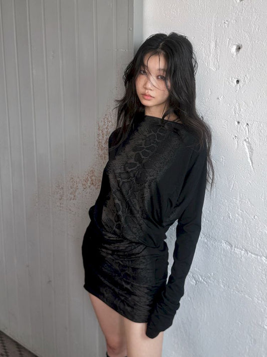 Irregular Snake Print Neck Slim Fit Stretch T-Shirt Dress