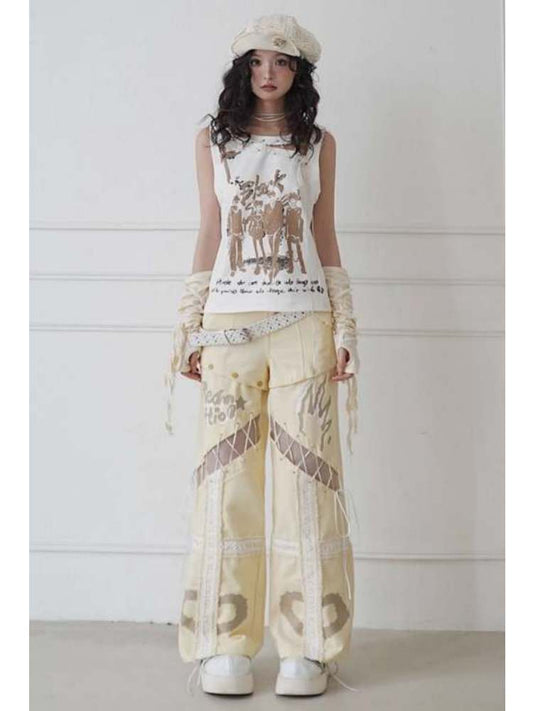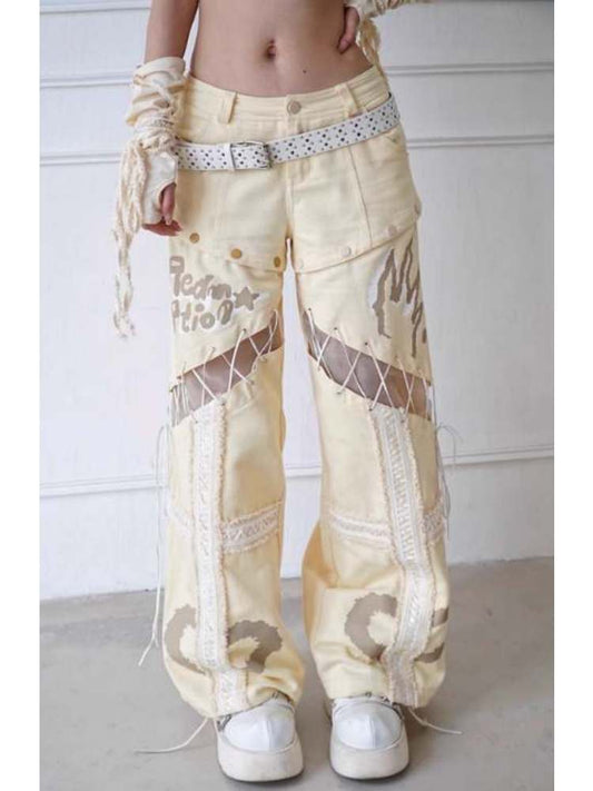 Lace-Up Detachable Straight-Leg Cut Jeans