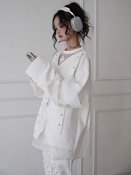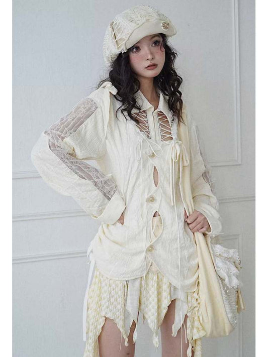 Niche Original Design Strap Sheer Lace Shirt