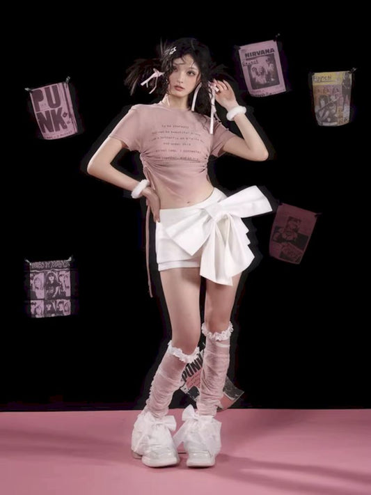 Large Bow Peplum Girly Style Semi Skirt Pants