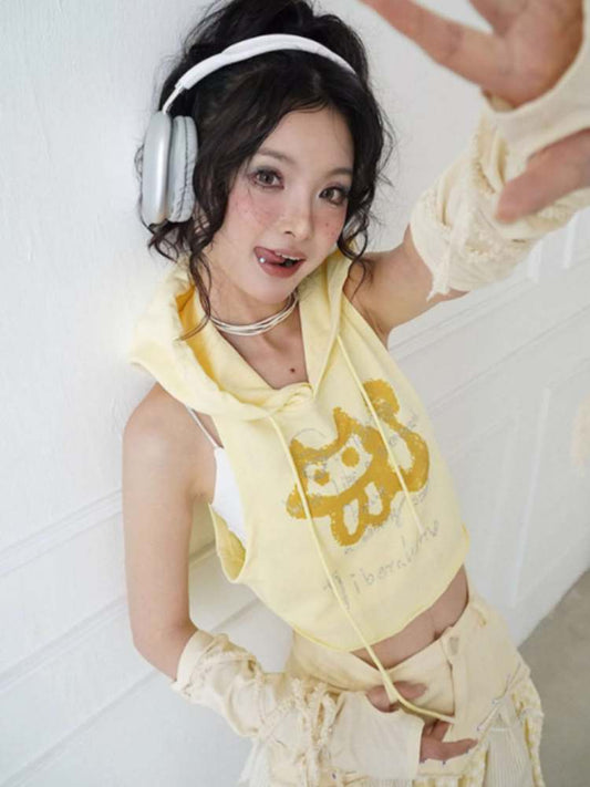 Kitty Print Hooded Tops & Camisole