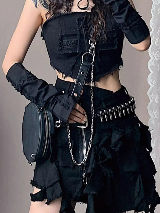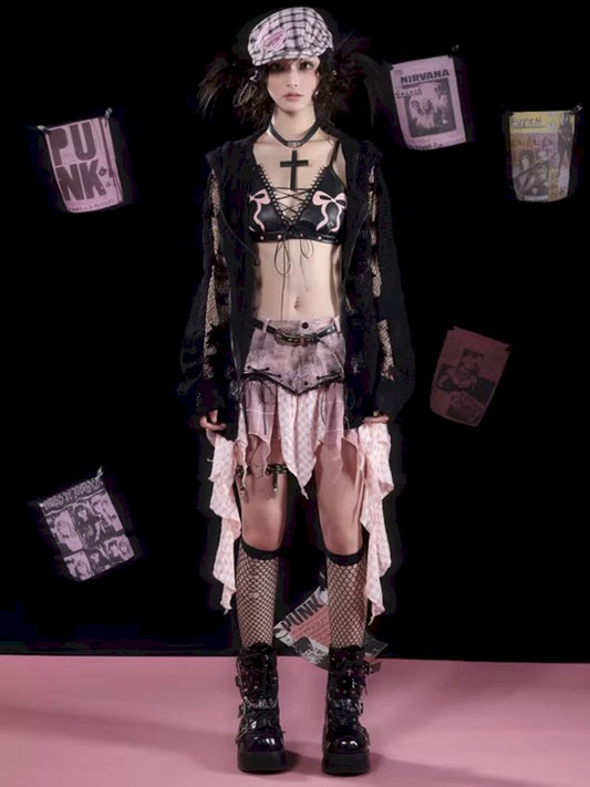 Irregular Hem Patchwork Mini Skirt