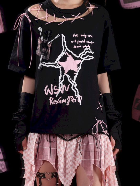 Hollow Out Tie Design Fashion Asian T-Shirt