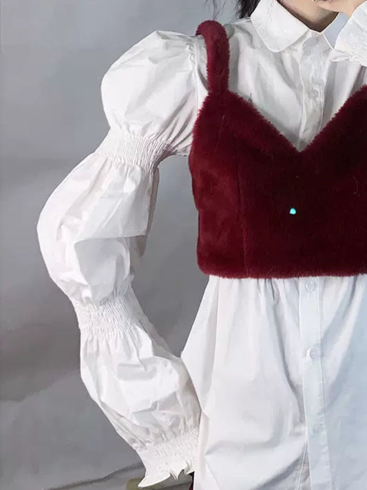 Puff sleeve design white shirt