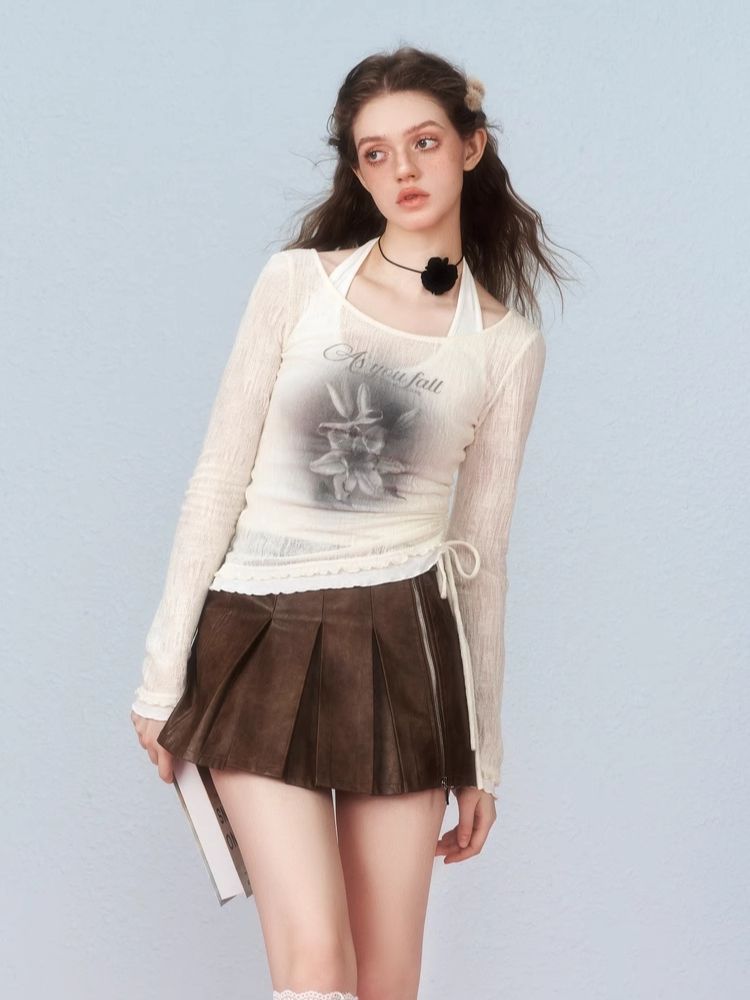 Two Pieces Layered Knit Long Sleeve T-Shirt