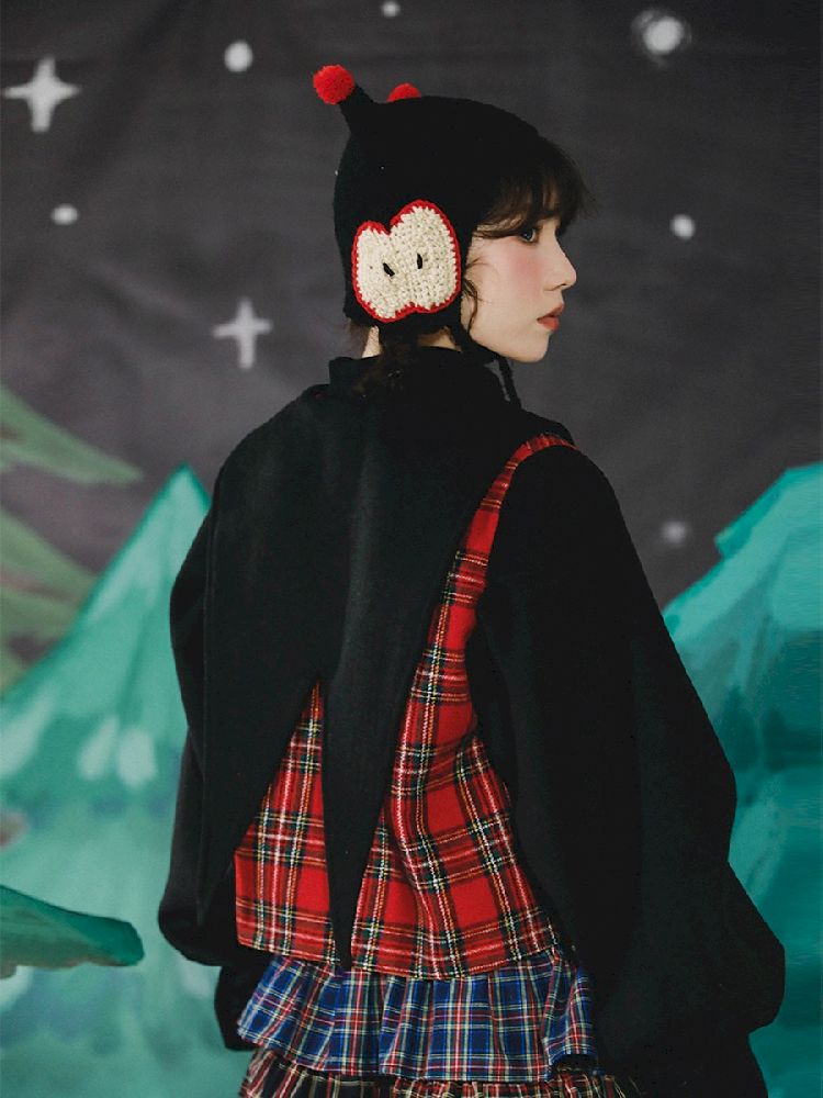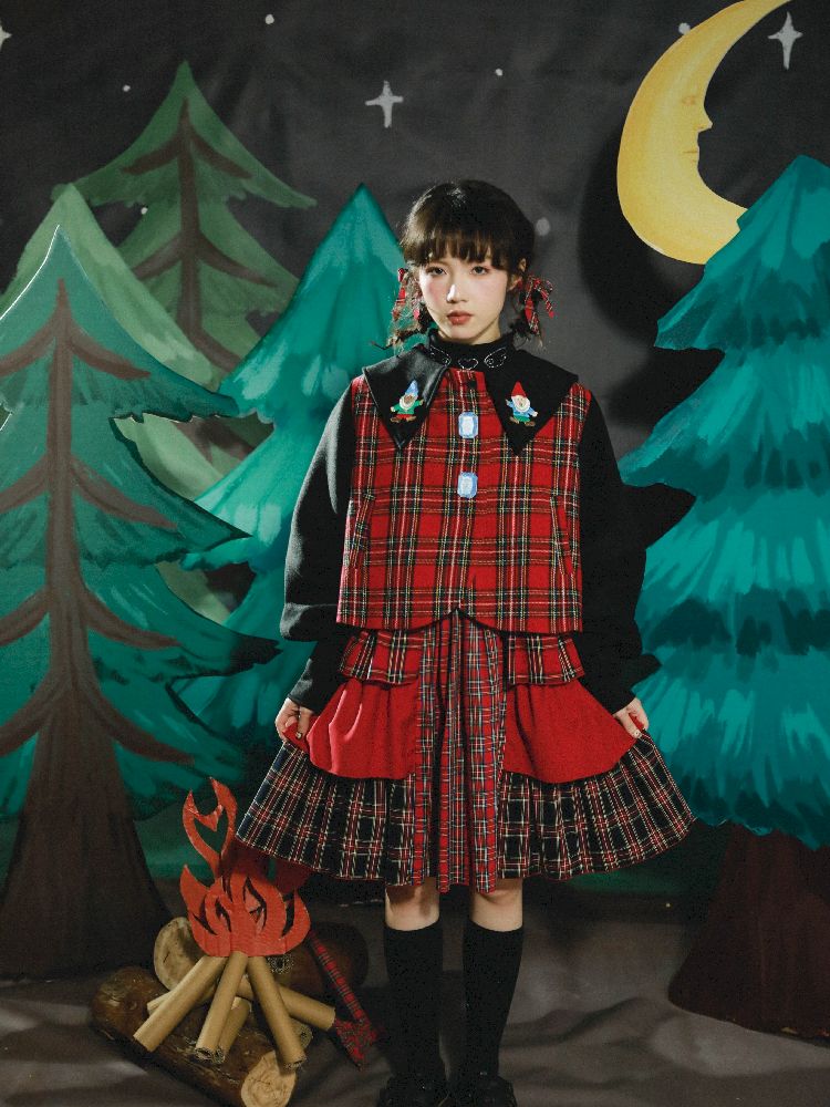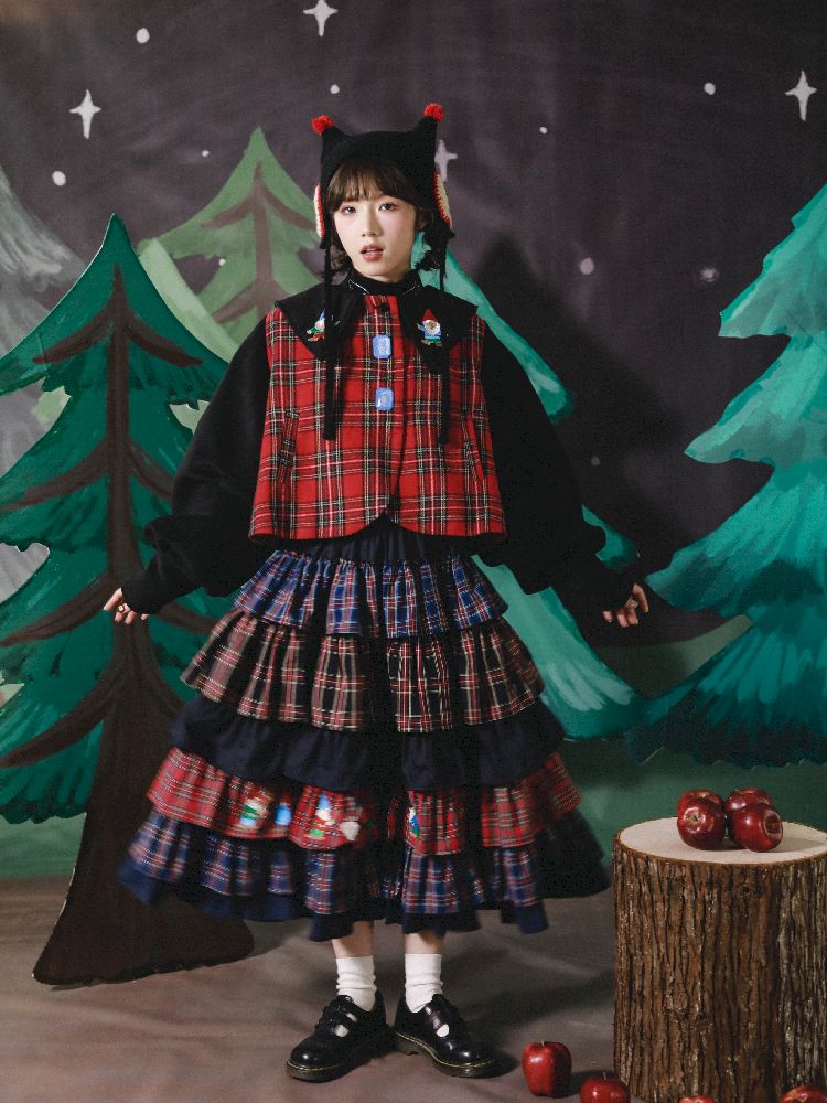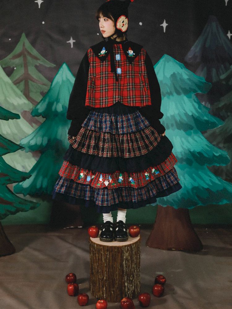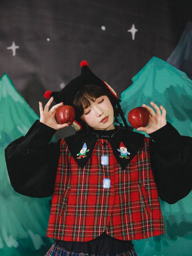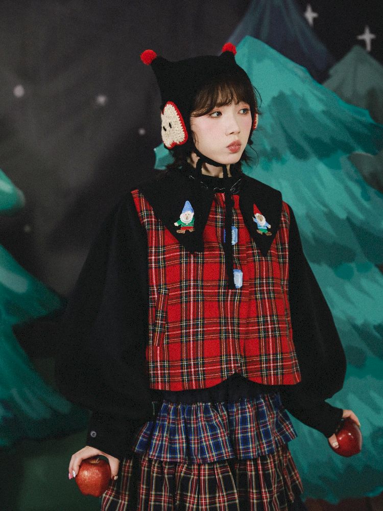 Red Grid Patchwork Lolita Silhouette Short Jacket
