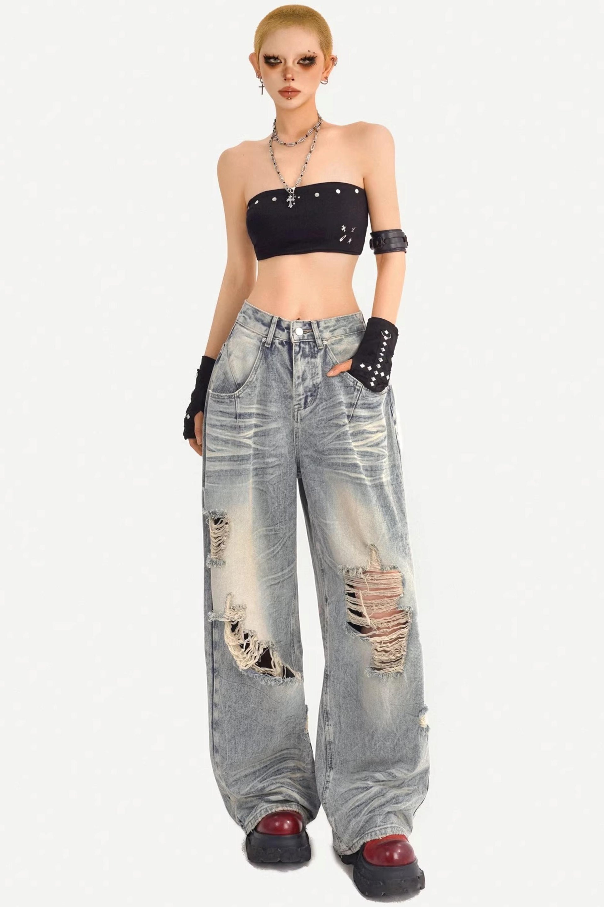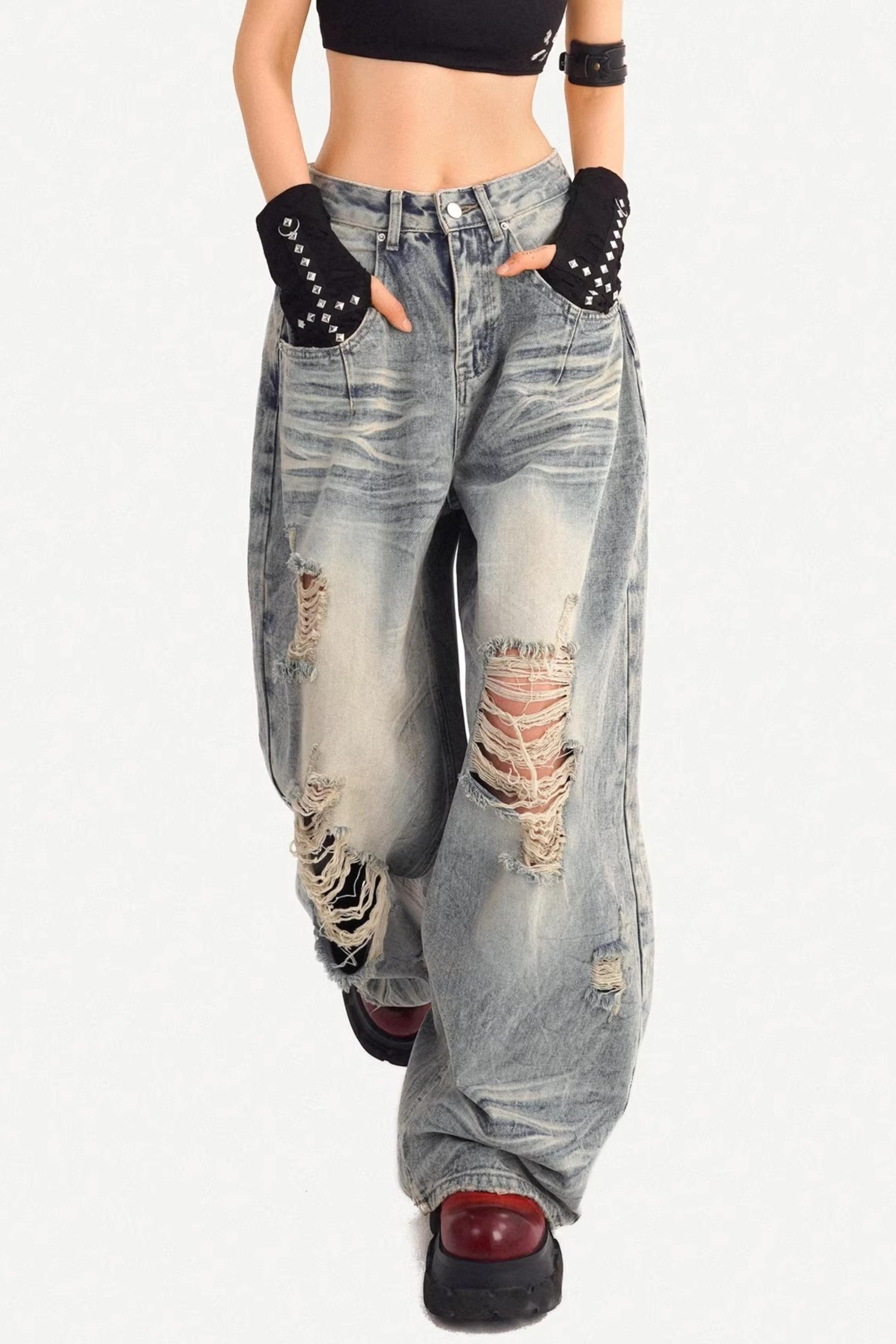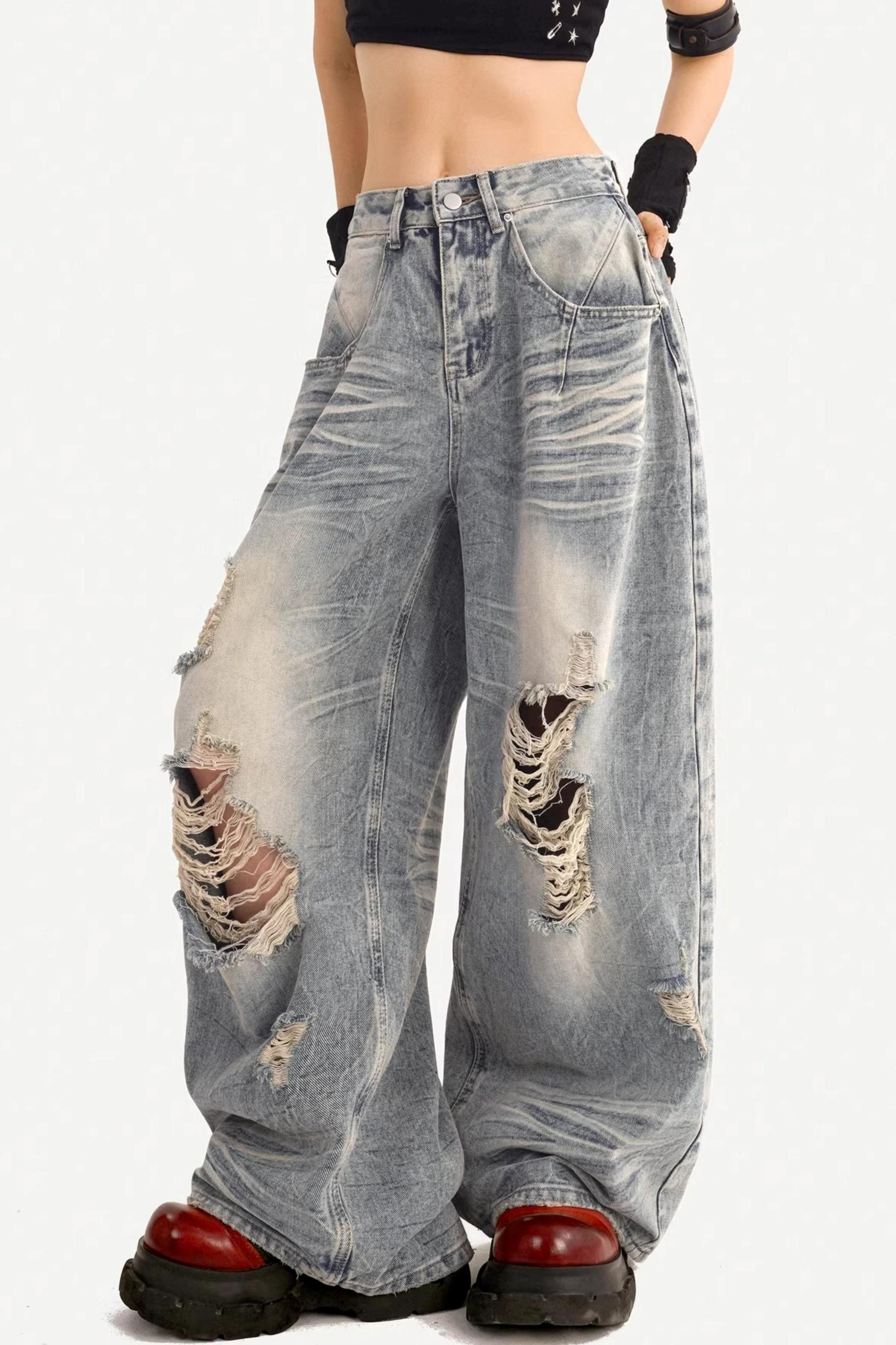 American Retro Ripped Denim Pants
