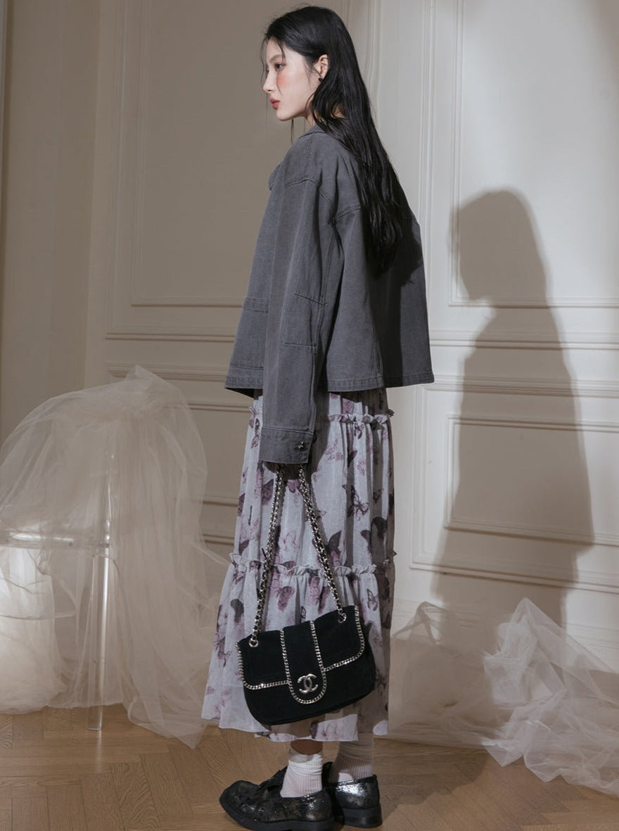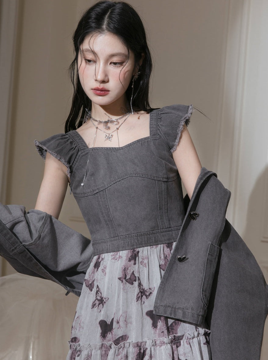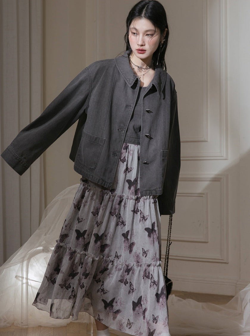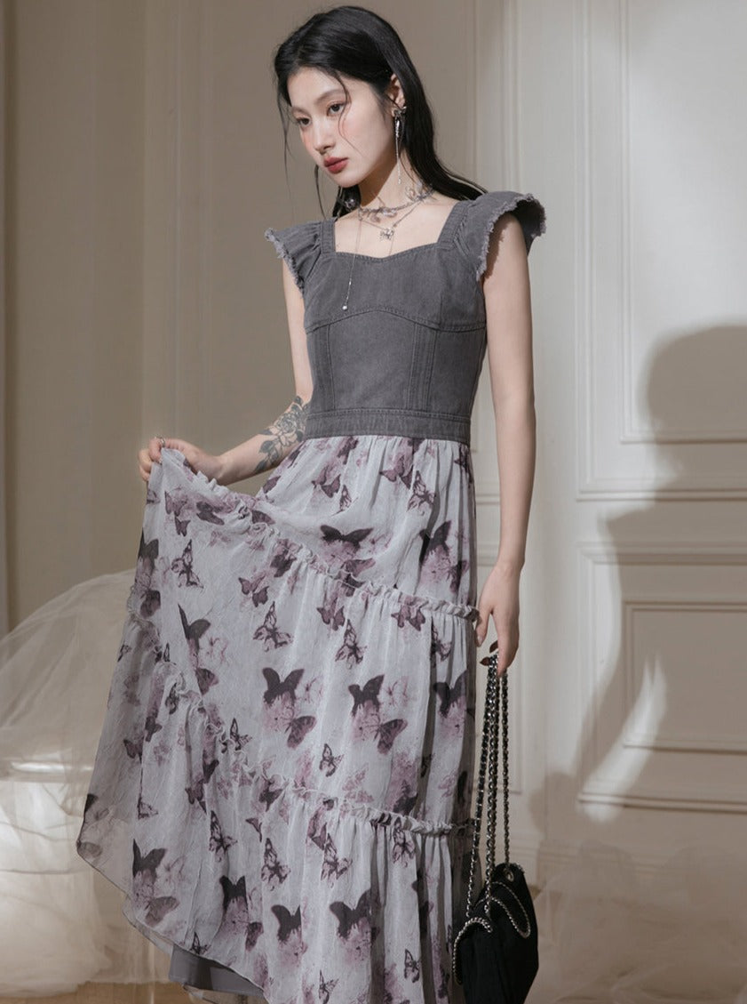 Butterfly Denim Printed Dress