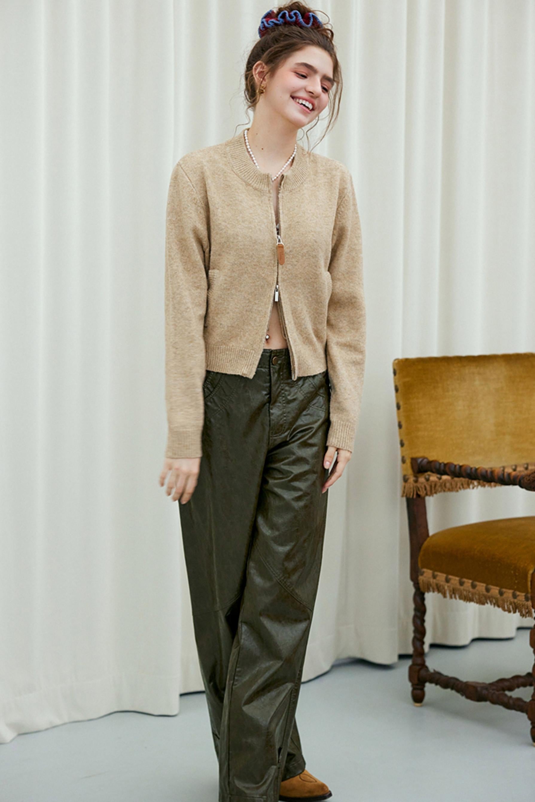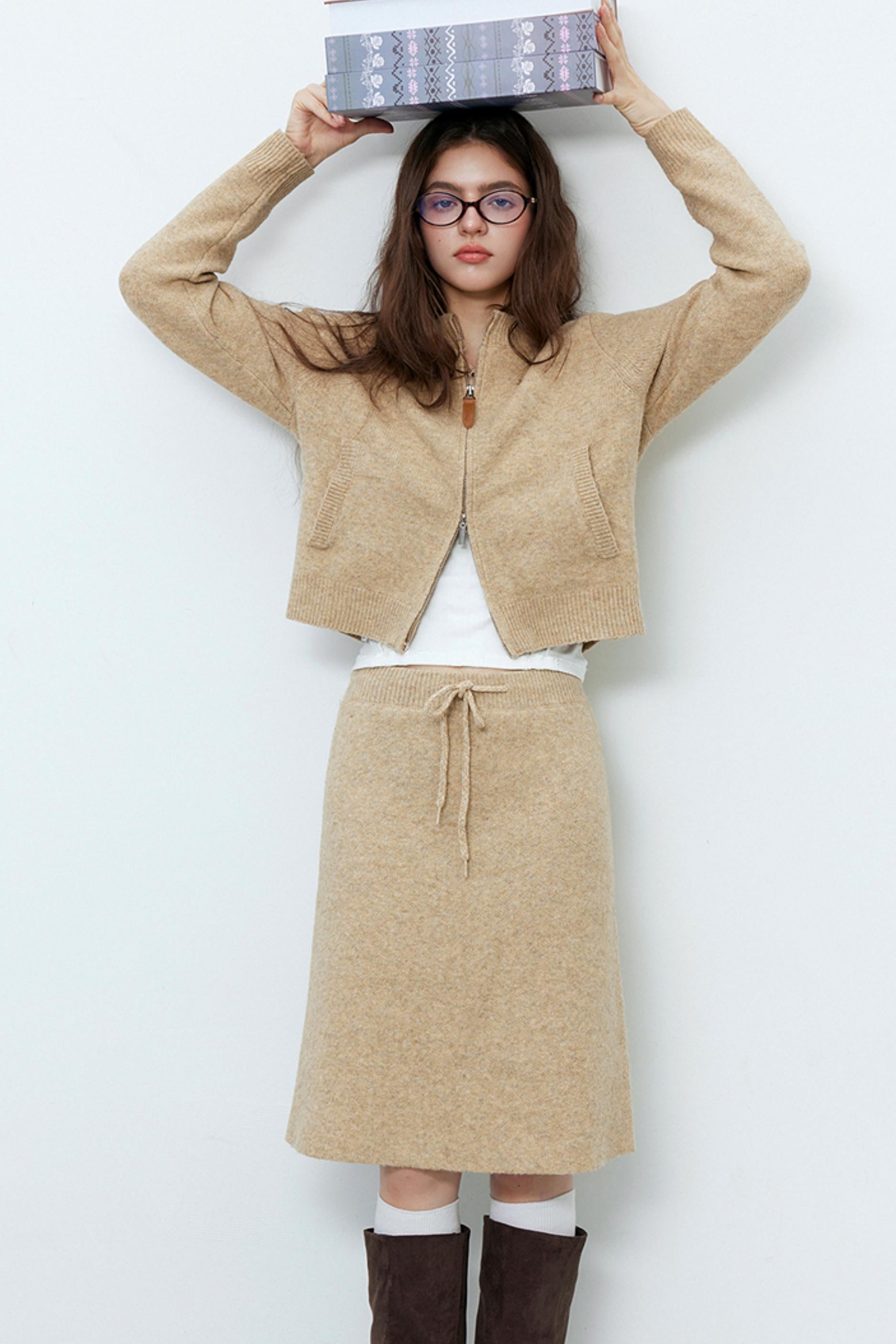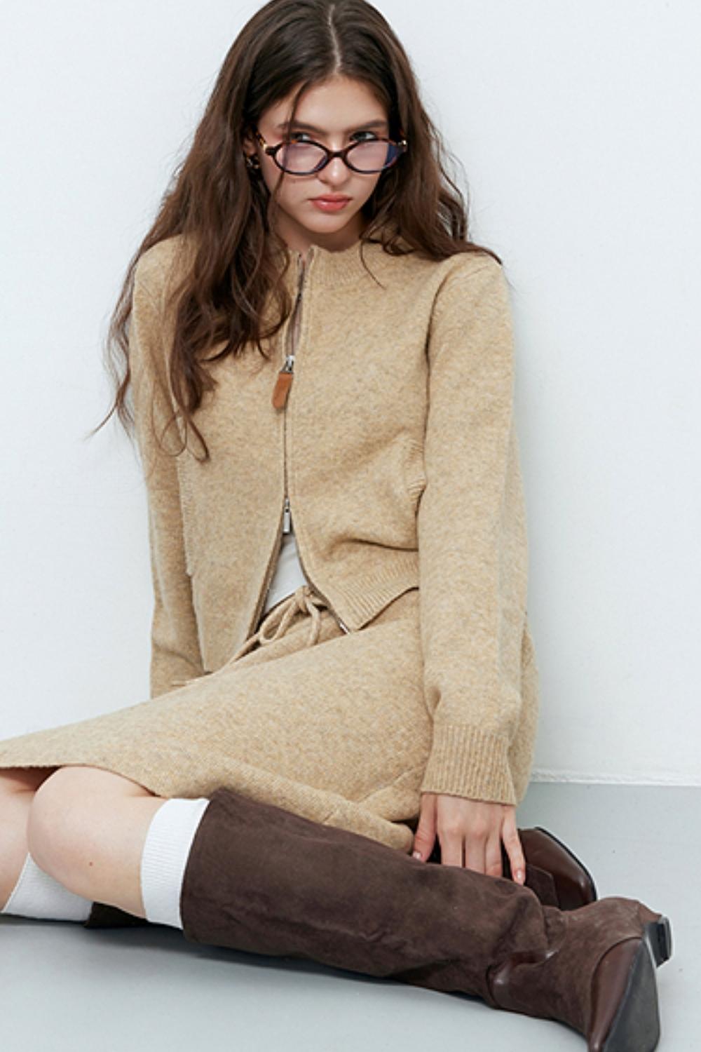 Camel Wool Knit Cardigan