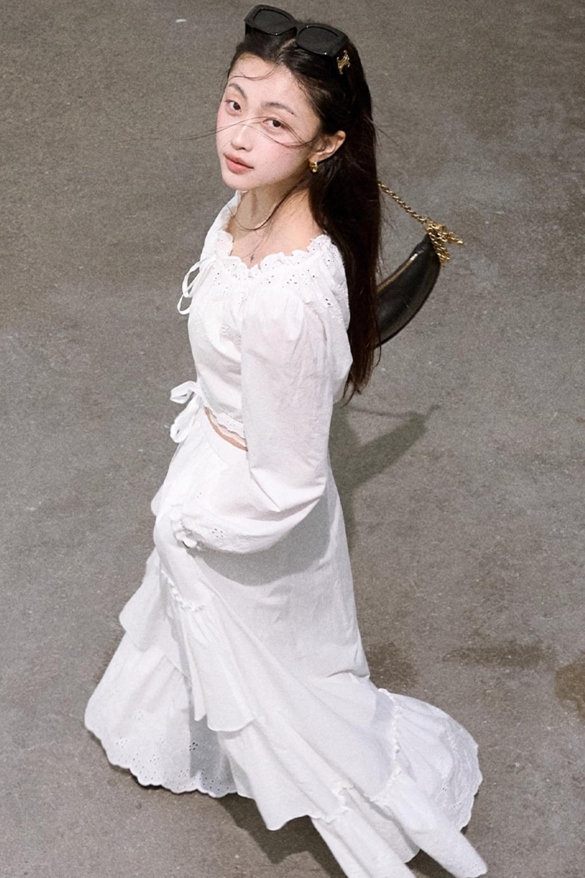 Cotton Strappy White Shirt Two-Piece Set-Up